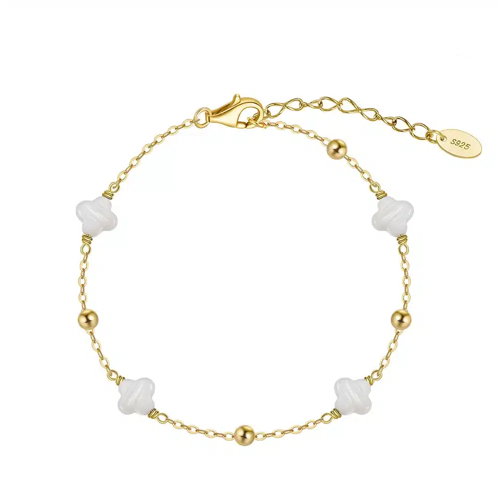 S925 Sterling Silver Bracelet Small Flower Four Leaf Clover Zircon Bracelet Female Simple Fashion Ins Style Bracelet