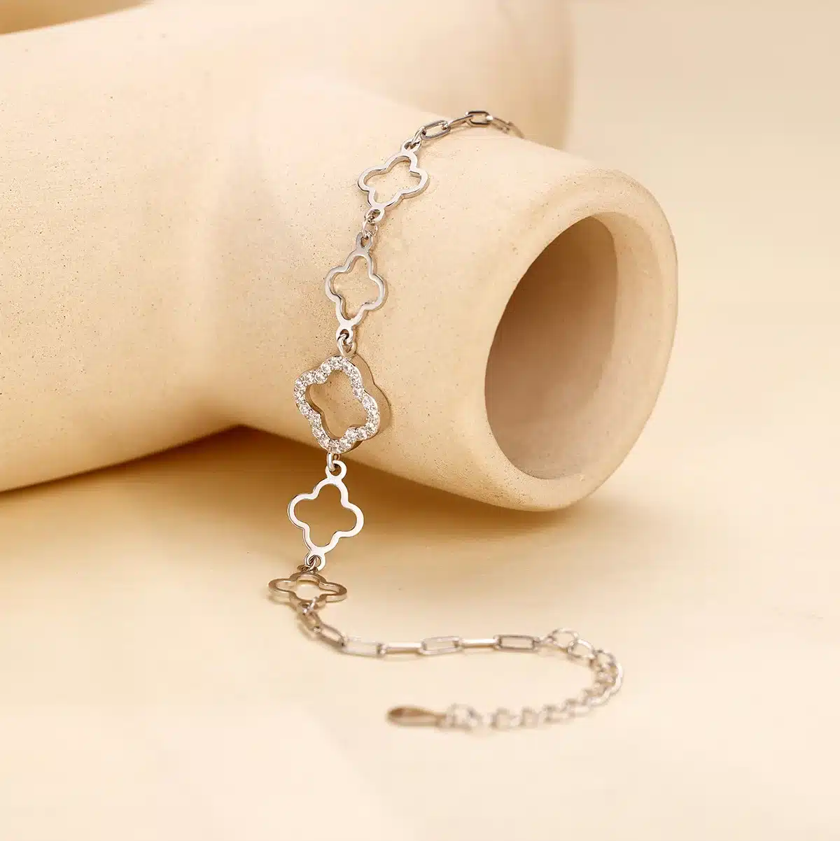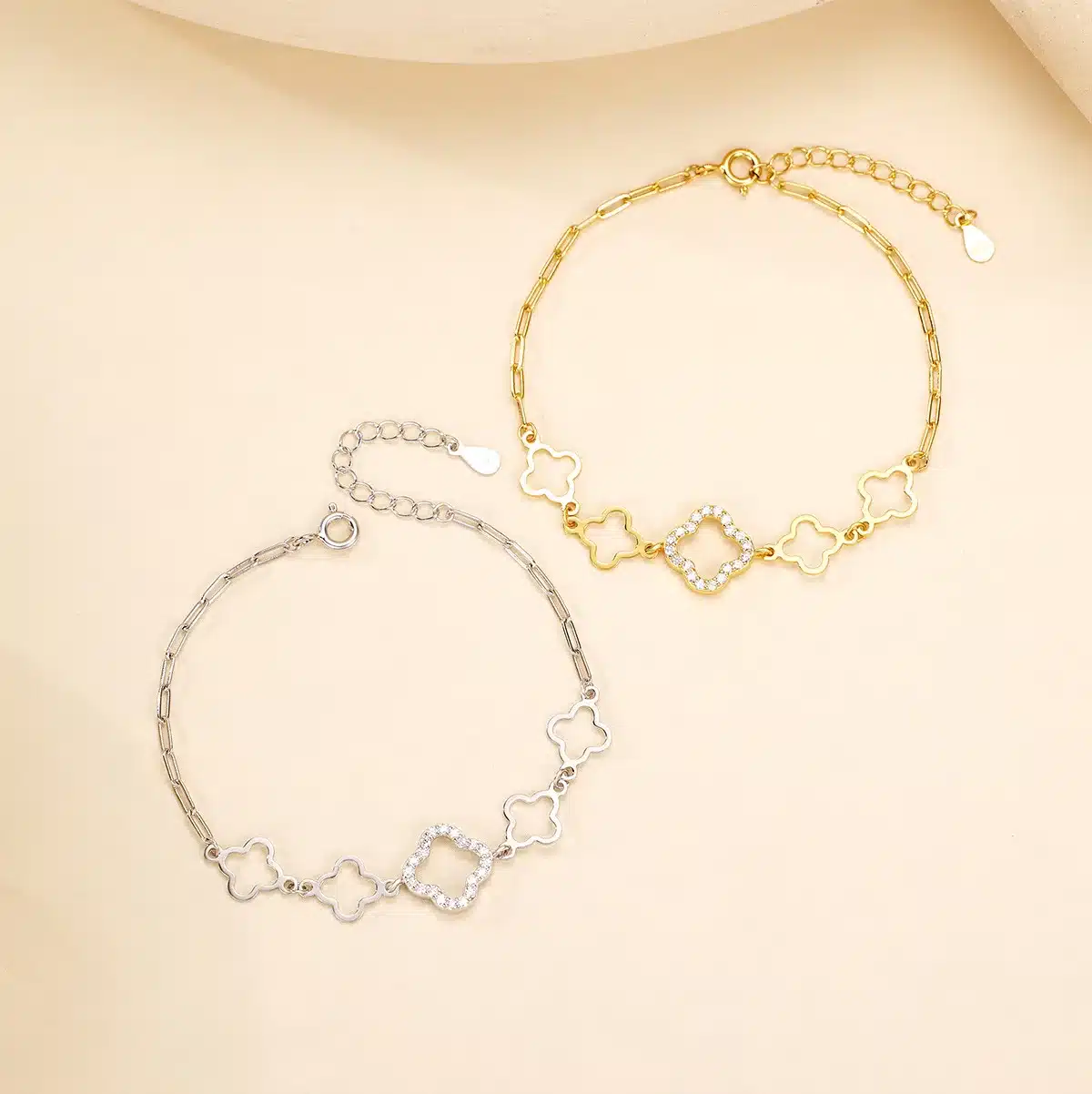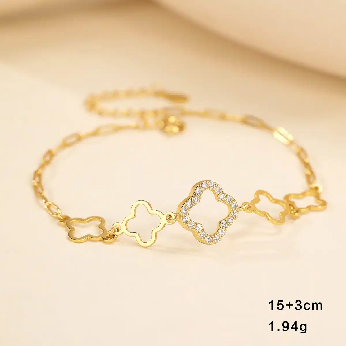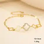 Key attributes Plating:Rhodium Plated, Gold Plated Bracelets or Bangles Type:Chain & Link Bracelets Jewelry Type:Bracelets, Bangles Shape:Four-Leaf Clover Main Stone:ZIRCON