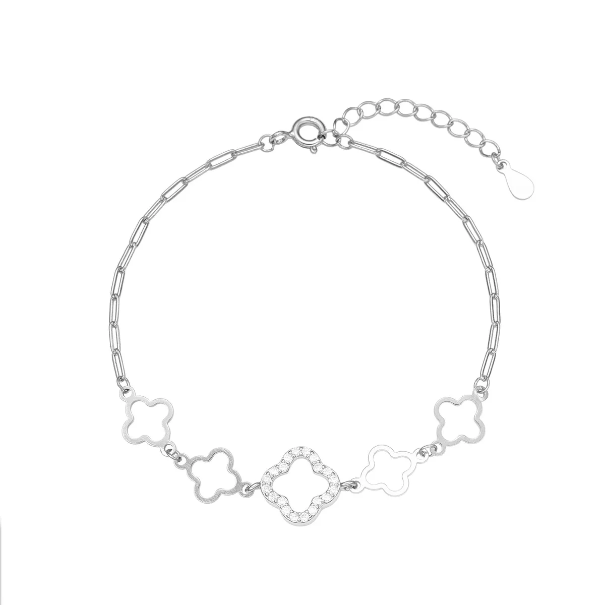S925 Sterling Silver Bracelet Small Flower Four Leaf Clover Zircon Bracelet Female Simple Fashion Ins Style Bracelet
