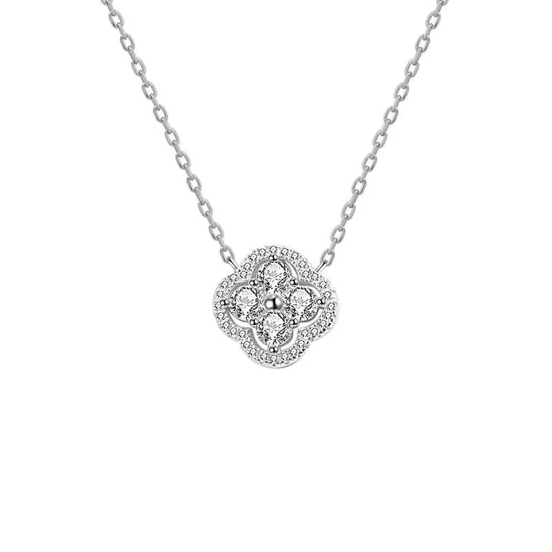 SPJ Four Leaf Clover 925 Sterling Silver Studs Earrings Rhodium Plated S925 Siver Cubic Zircon Necklace Stud EarringsJewelry Set