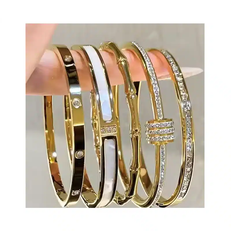 Key attributes Bracelets or Bangles Type:Charm Bracelets Plating:Gold Plated Style:fashion Jewelry Main Material:Stainless steel Gender:Men’s Jewelry Type:Bracelets, Bangles
