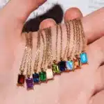 Be the first to review “Stainless Steel Necklace Oblong Birthstone Pendant Colorful Zircon Clavicle Chain Women Fashion Plated 18K Gold Necklace Jewelry” Cancel reply