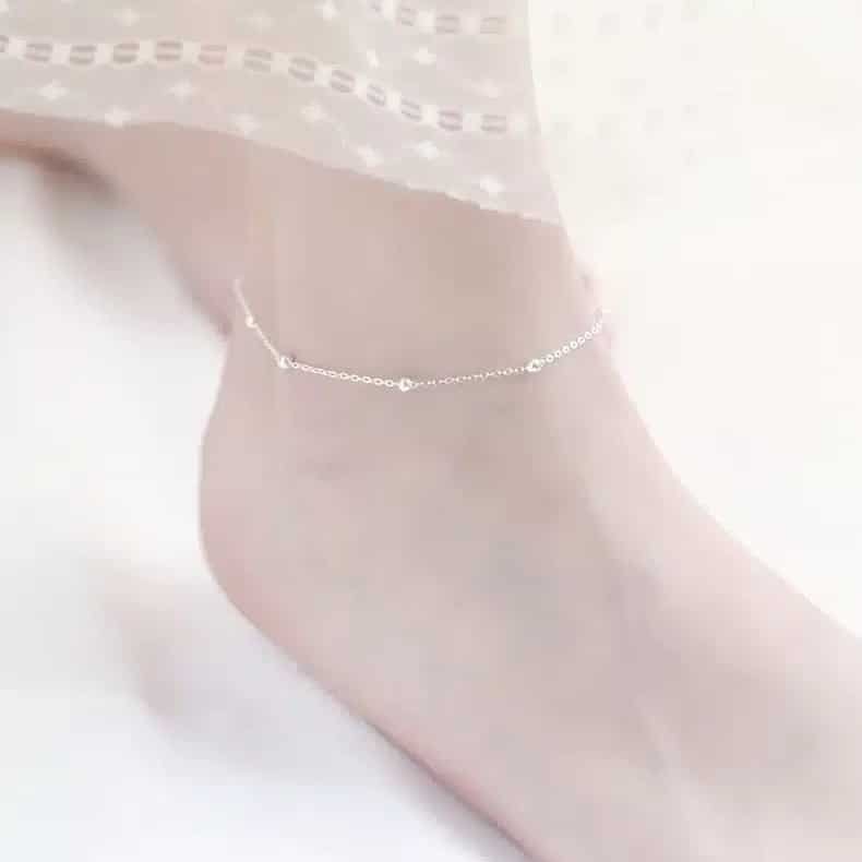 Summer Fashion 925 Silver Chain Anklets for Women Beach Party Beads Ankle Jewelry