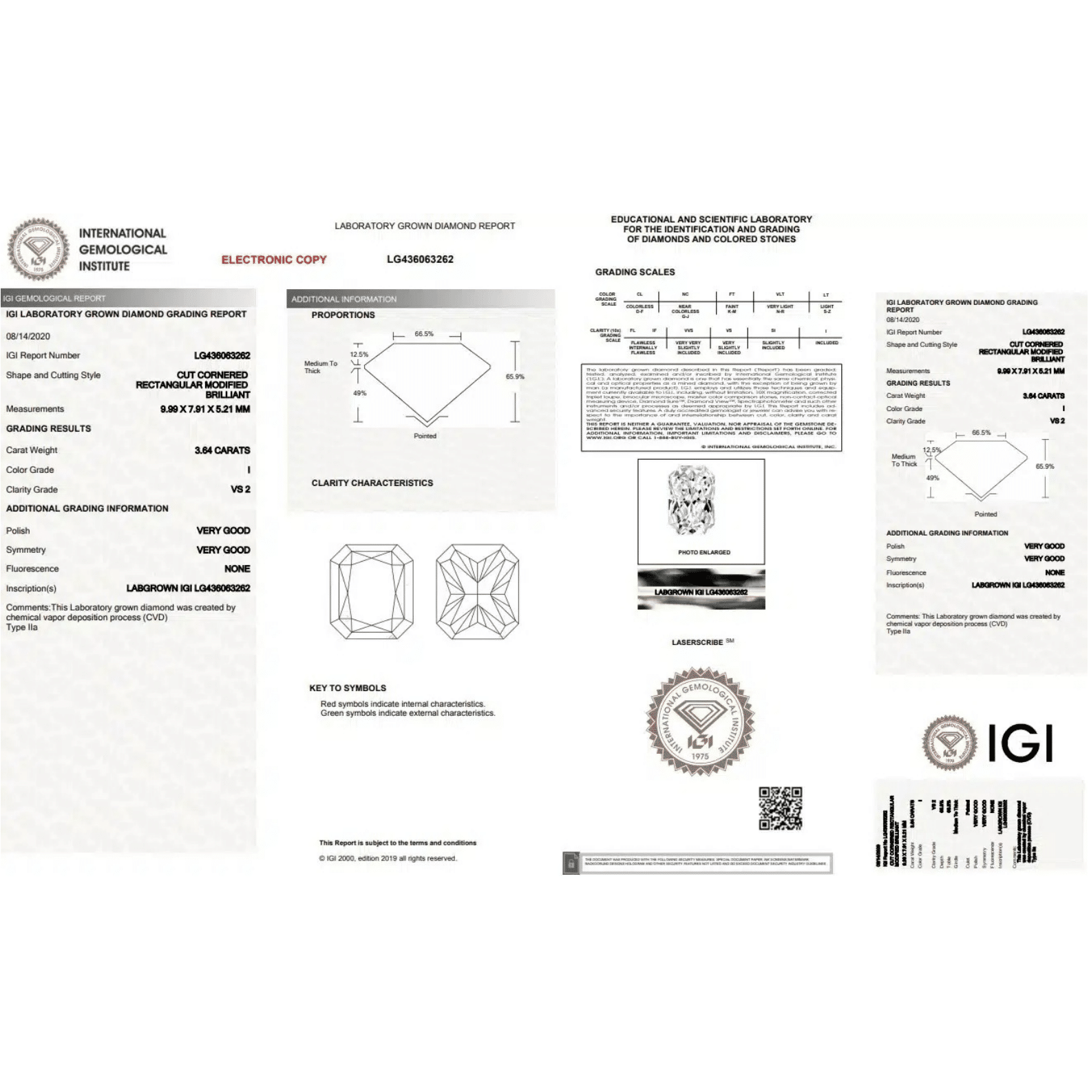 Name:white gold IGI 3.5ct H /VS2 Radiant cut lab diamond halo ring set