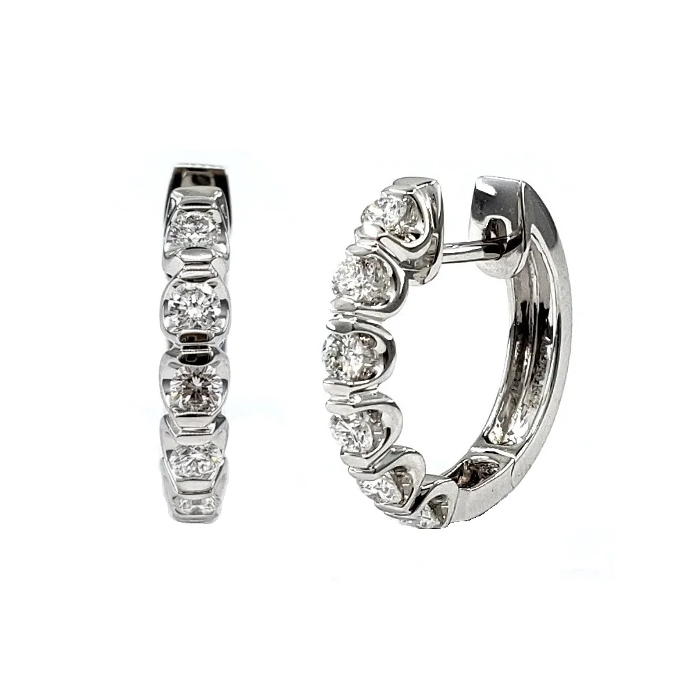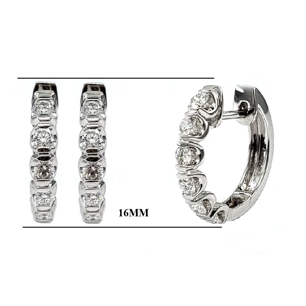 Timeless Jewelry Collection 18k Solid White Gold Natural Diamonds Set In Round Settings With Strong claws Hoops for Anniversary
