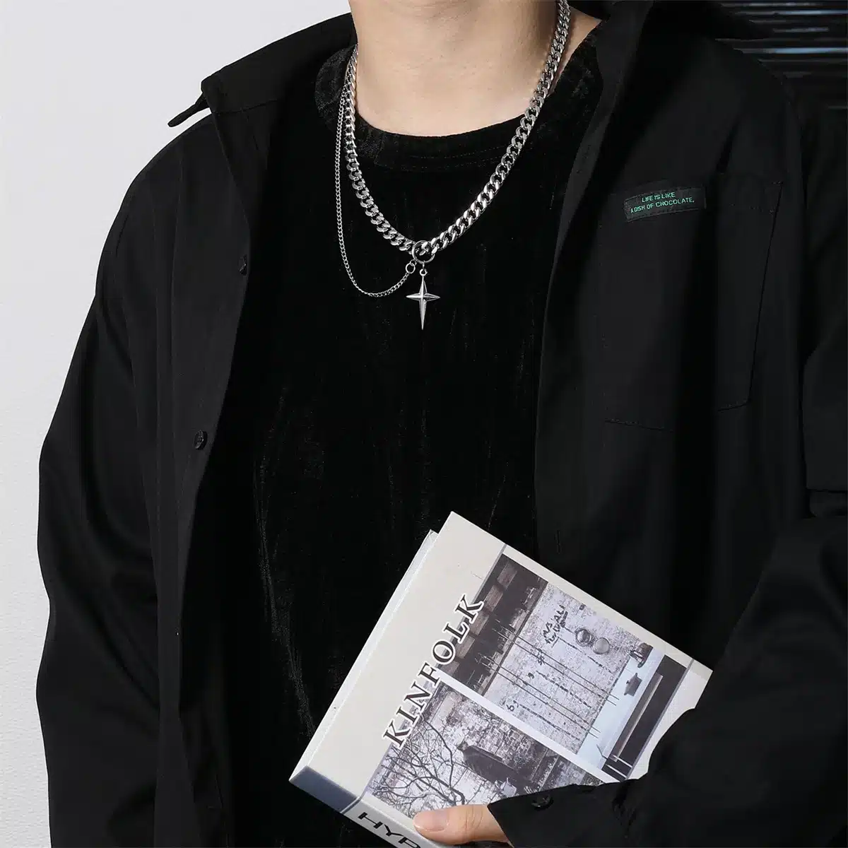 Hip Hop Stainless Steel Chain with Large Cross Pendants Necklaces for Men Trendy Street Accessories on Neck Fashion Jewelry Gift