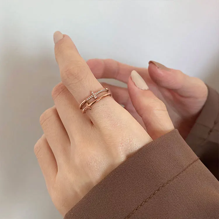 Trendy Double Cross Stainless Steel Finger Rings for Women CZ Zircon Diamond Jewellery for Wedding Engagement or Gift