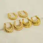 Be the first to review “Trendy Stainless Steel Round Crescent Twisted Earrings for Women Hypoallergenic 18K Gold Huggie Hoop Earring”