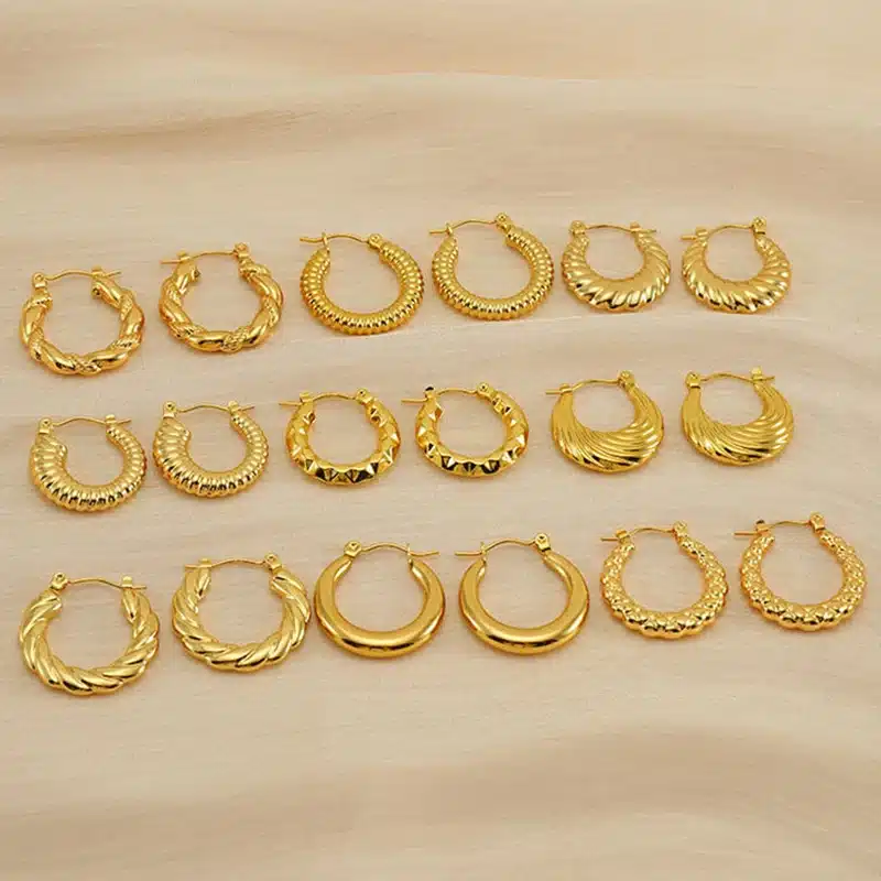 Be the first to review “Trendy Stainless Steel Round Crescent Twisted Earrings for Women Hypoallergenic 18K Gold Huggie Hoop Earring”