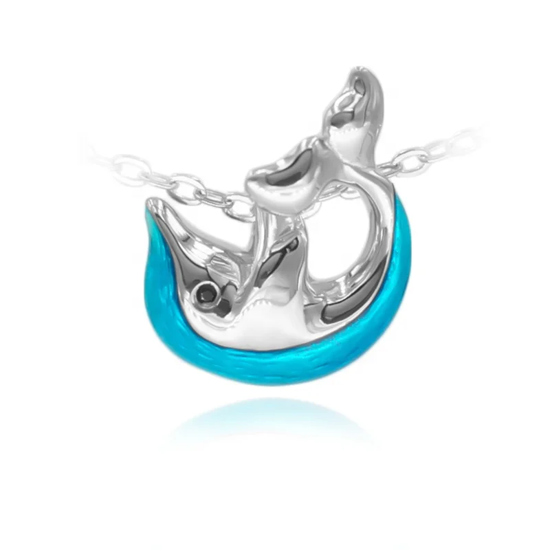 Trendy Women’s 925 Silver Dolphin Pendant Necklace Rhodium Plated with Ocean Blue Enamel Cute for Anniversary Gifts Party