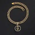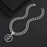 Cross Border HipHop New Product Round Pattern Alloy Full Diamond Pendant HipHop Cuban Chain Necklace Men’s Necklace Manufacturer