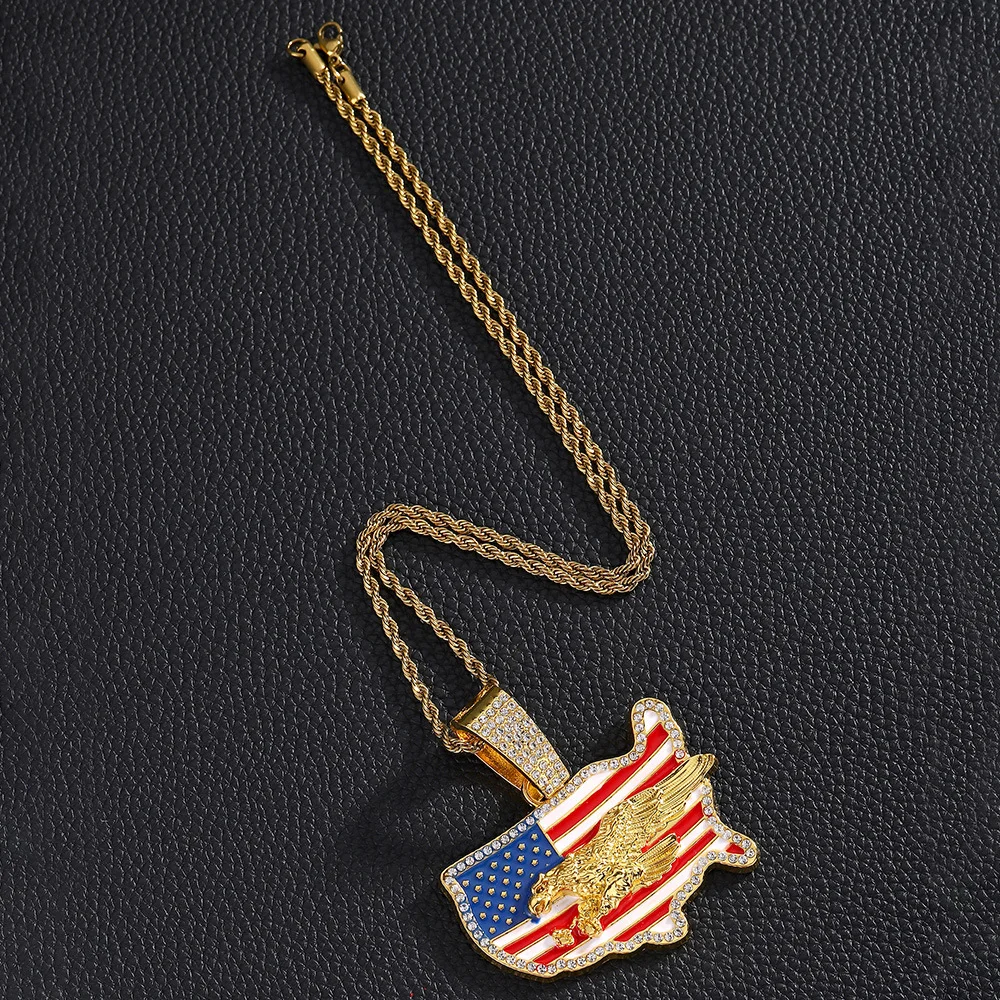 Unisex Cool Personality Trend Hip Hop Necklace with Diamond USA Flag Pendant for Gift