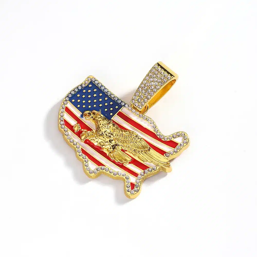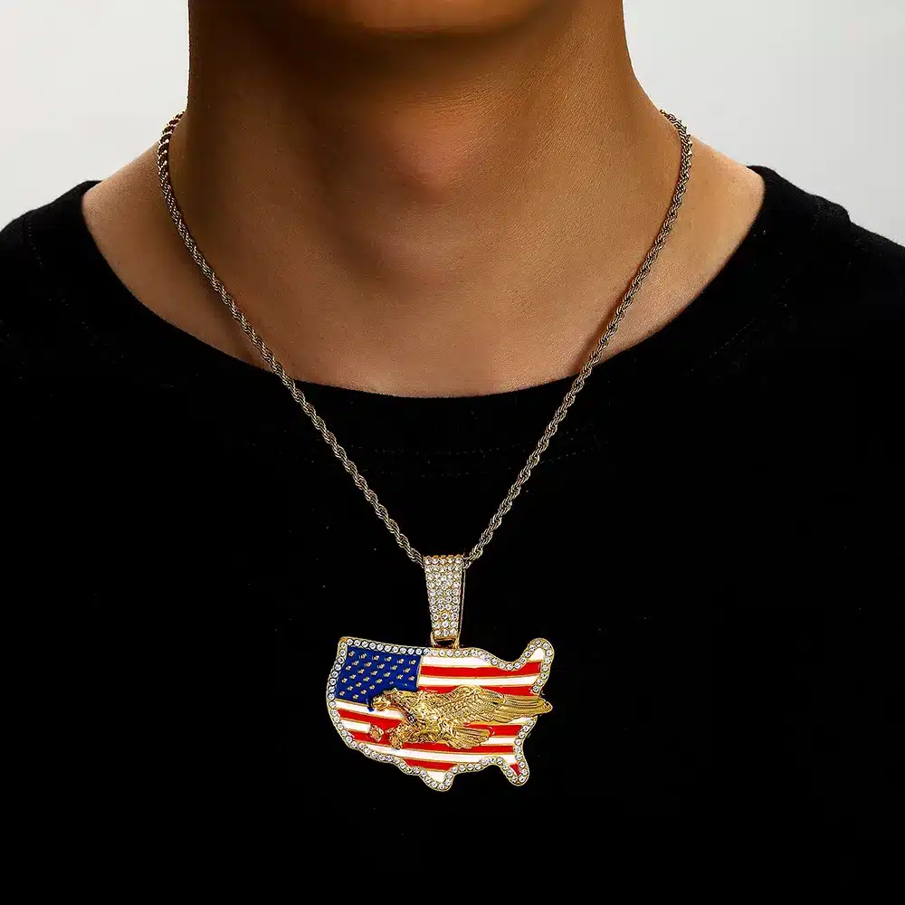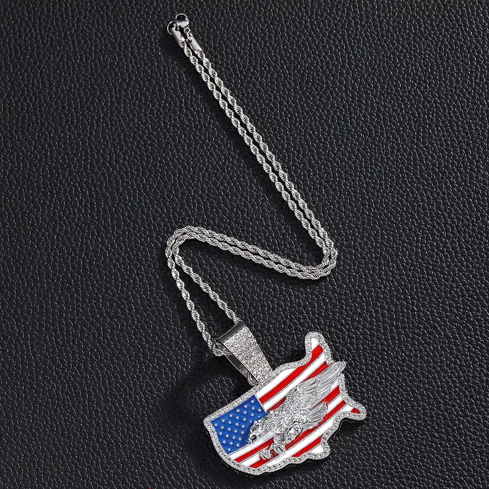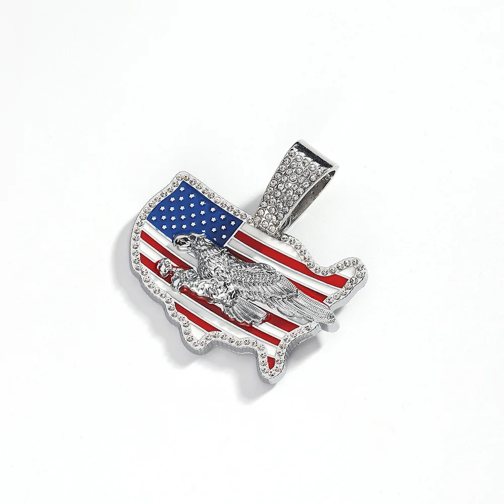 Unisex Cool Personality Trend Hip Hop Necklace with Diamond USA Flag Pendant for Gift