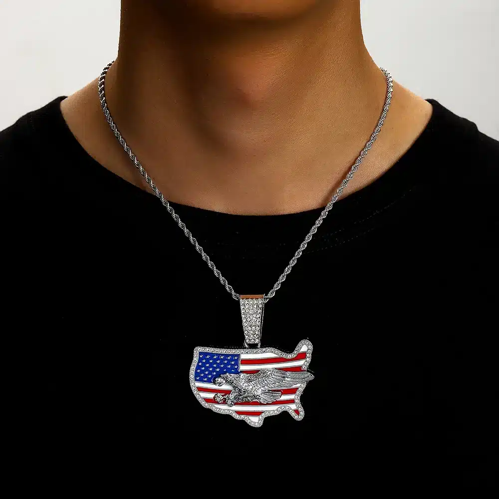 Be the first to review “Unisex Cool Personality Trend Hip Hop Necklace with Diamond USA Flag Pendant for Gift”