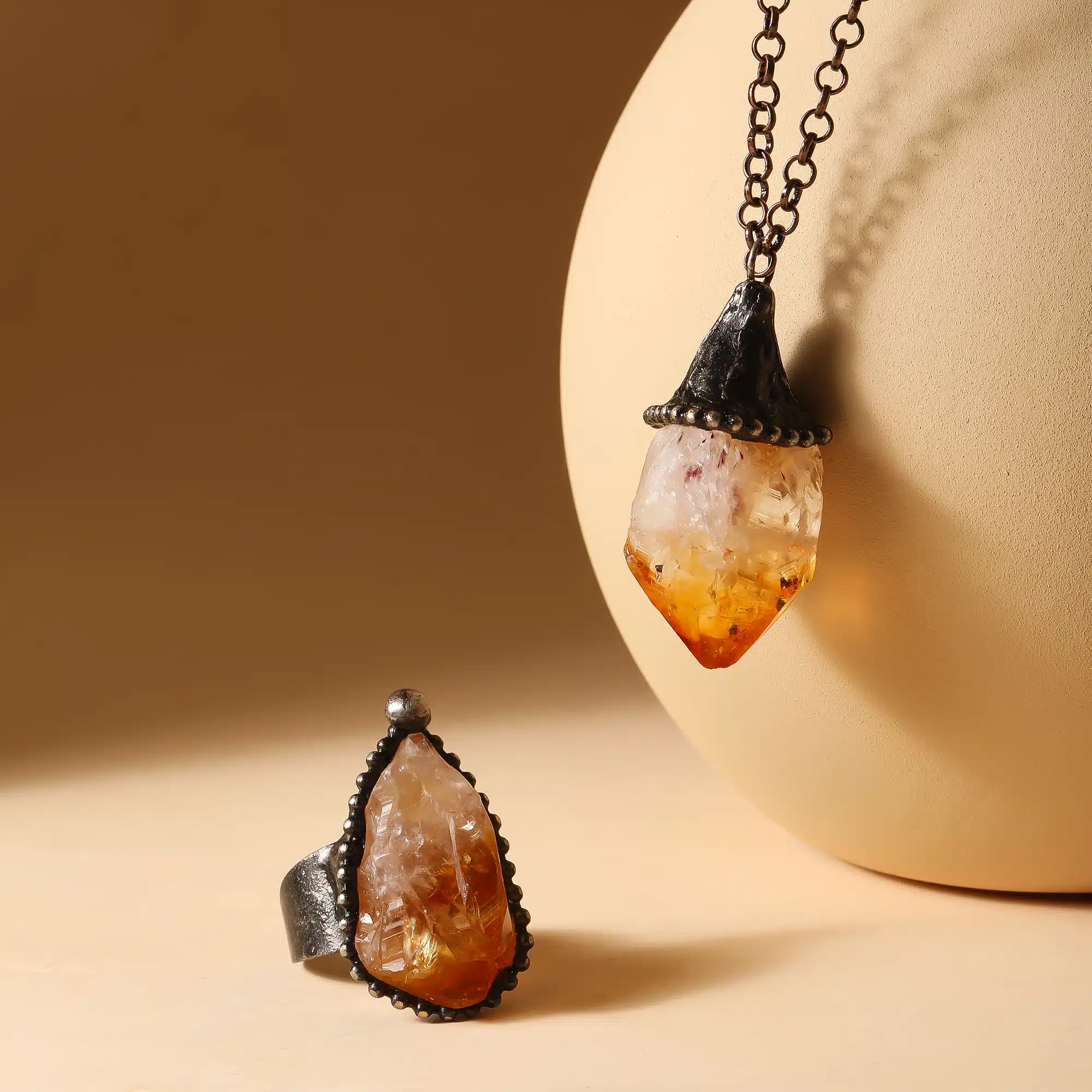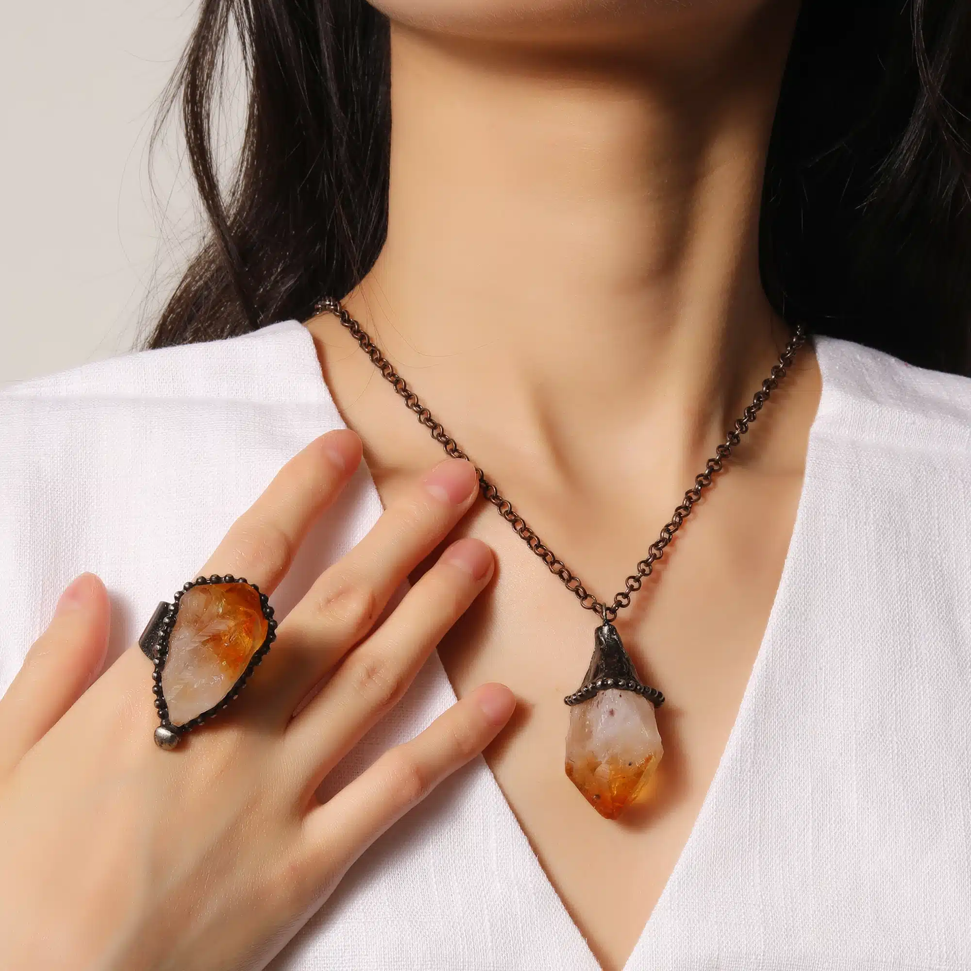 Be the first to review “Unisex Natural Citrine Pendant Necklace Ring Set Antique Bronze Electroplating Pyramid Design Gold Gemstone Fashion Jewelry”