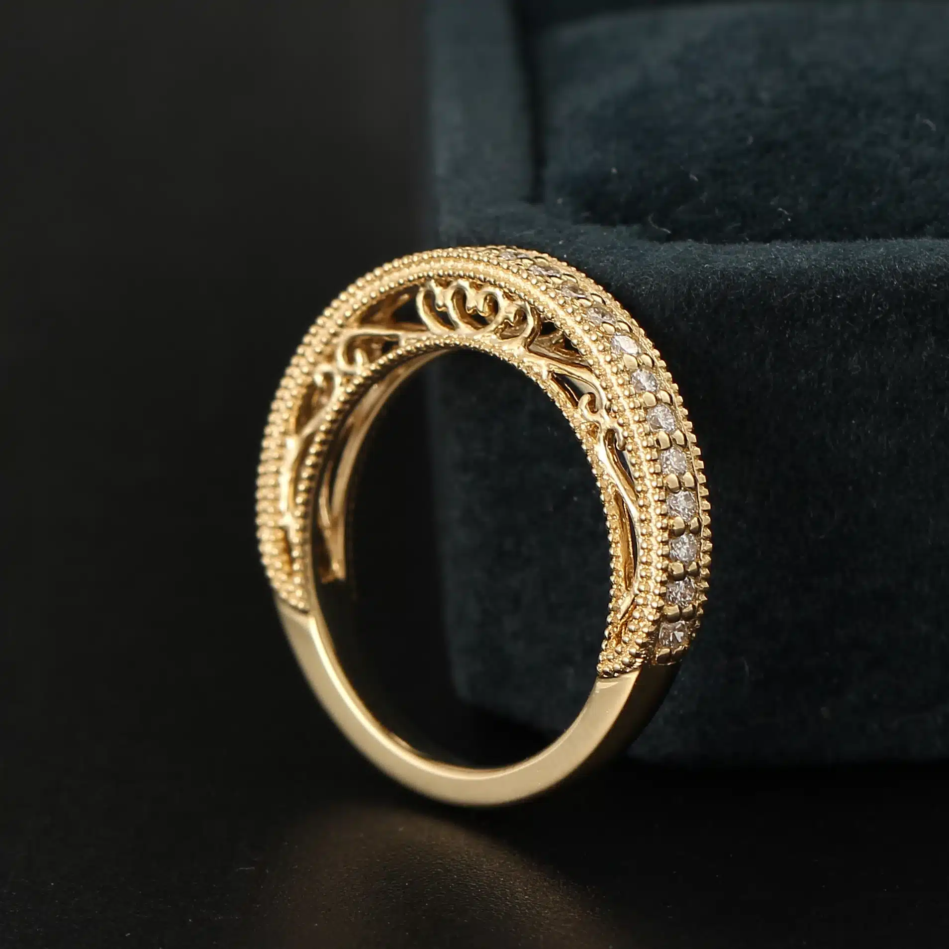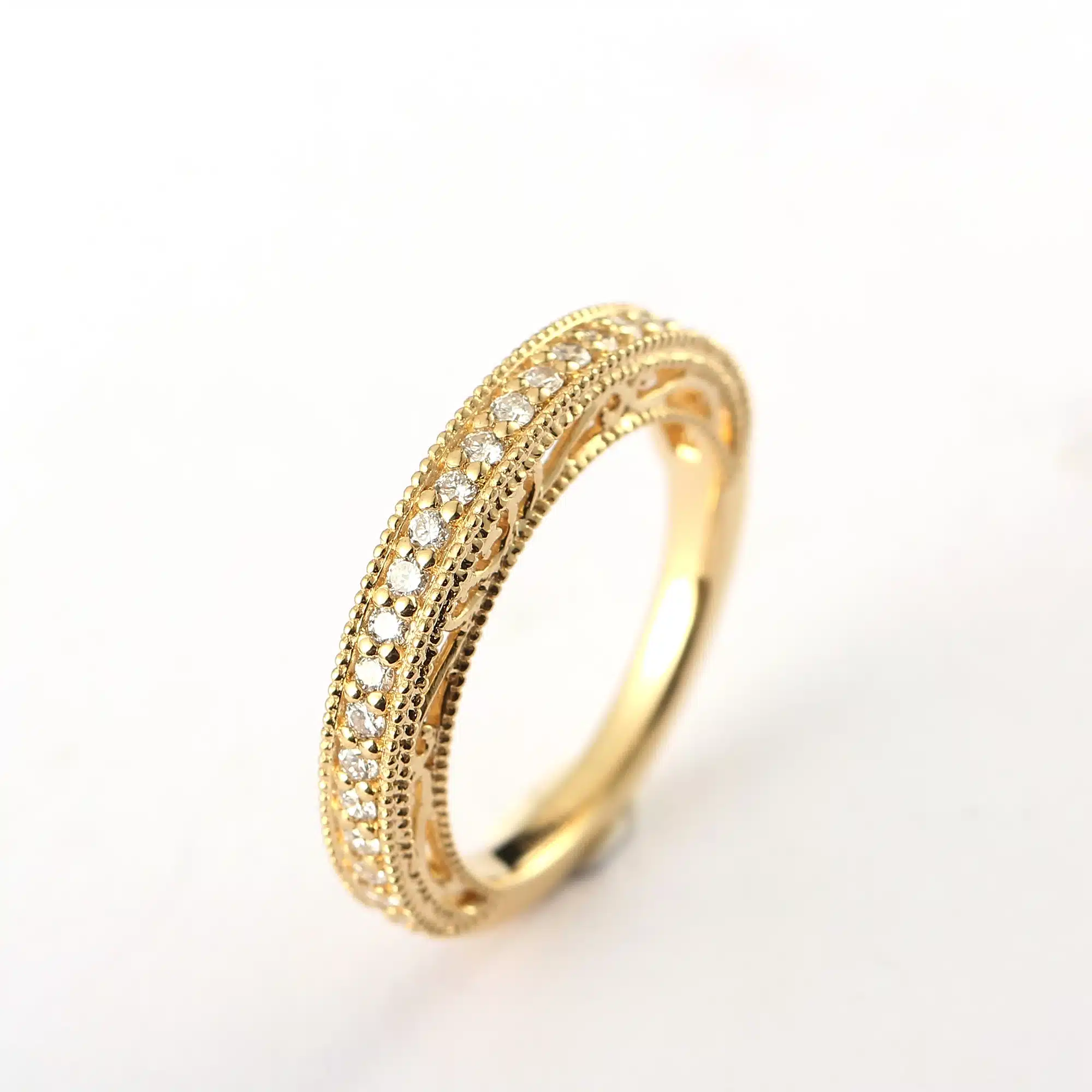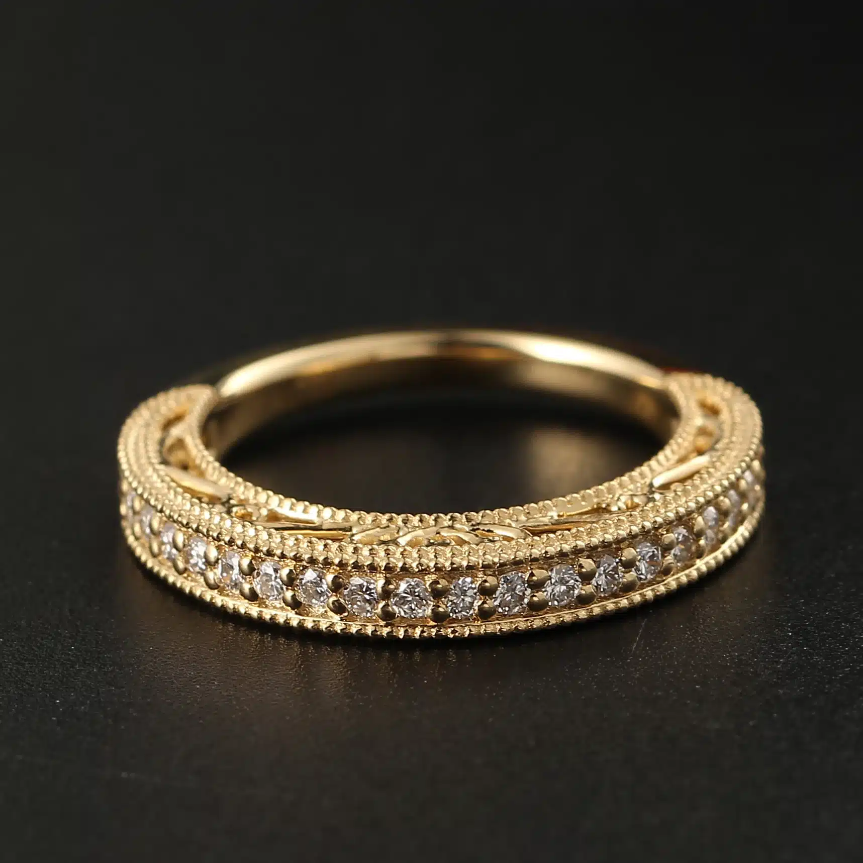 Vintage Filigree Craft 14K Yellow Gold Diamond Wedding Band Moissanite Eternity Band Ring for Women