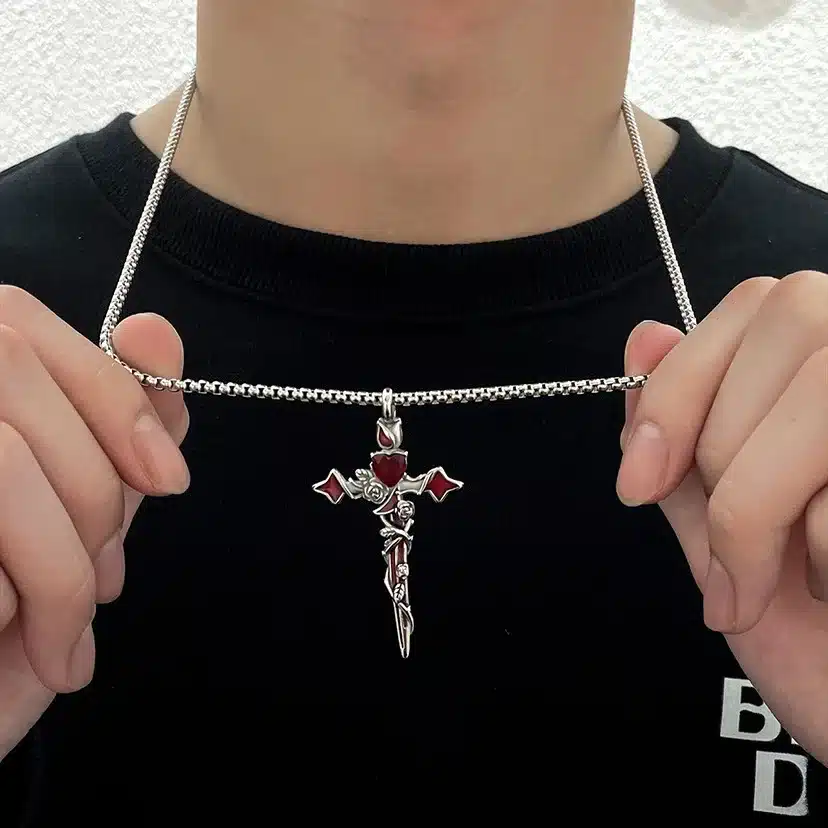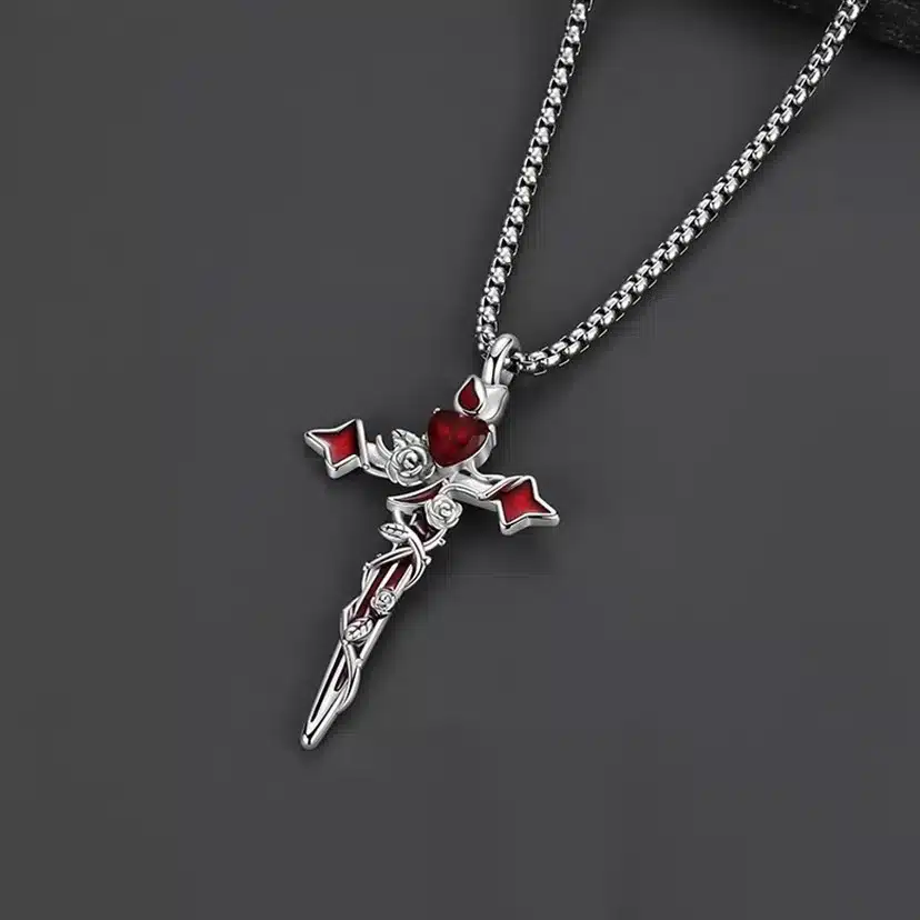 Vintage Rose Love Cross Pendants Necklace Hip Hop Stainless Steel Men’s and Women’s Thorn Sweater Chain Party Jewelry