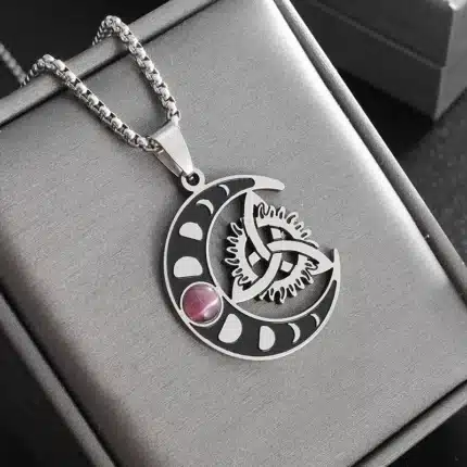 Stainless Steel Celtic Moon Pendant Witchcraft Witch Knot Necklace Men Women Punk Personality Charm Irish Amulet Jewelry Gift