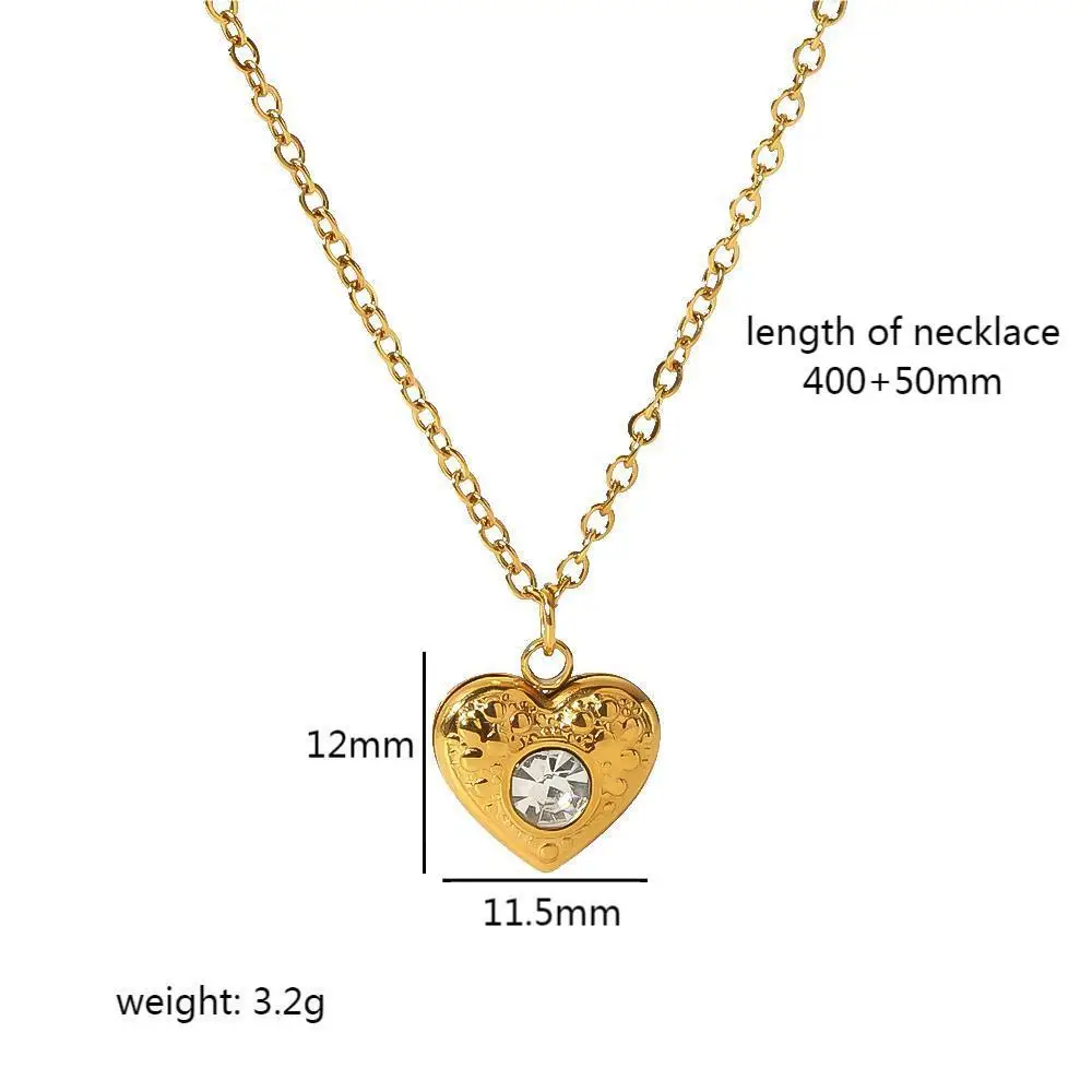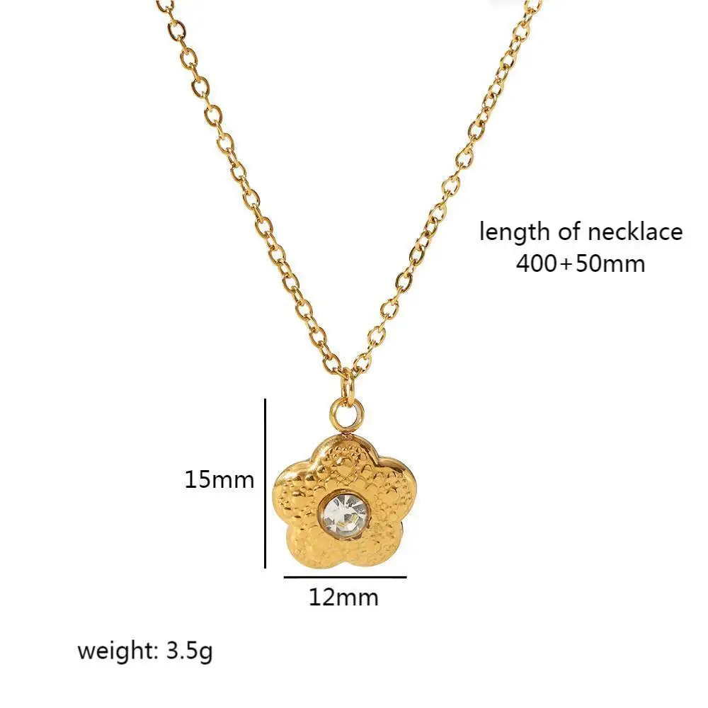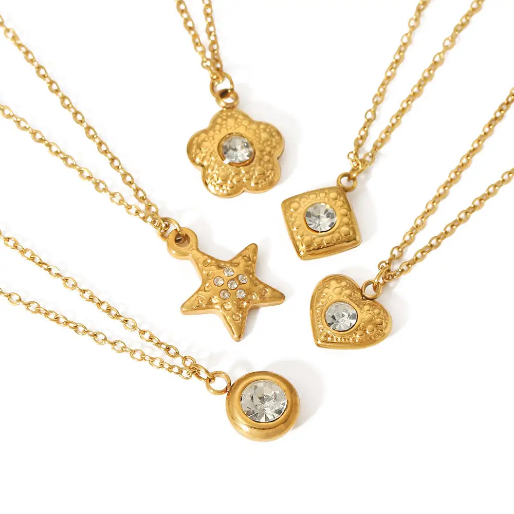 Vintage Waterproof Necklace Stainless Steel Jewelry Chain 18k Gold Plated Zircon Heart Round Flower Pendant Necklace for Women