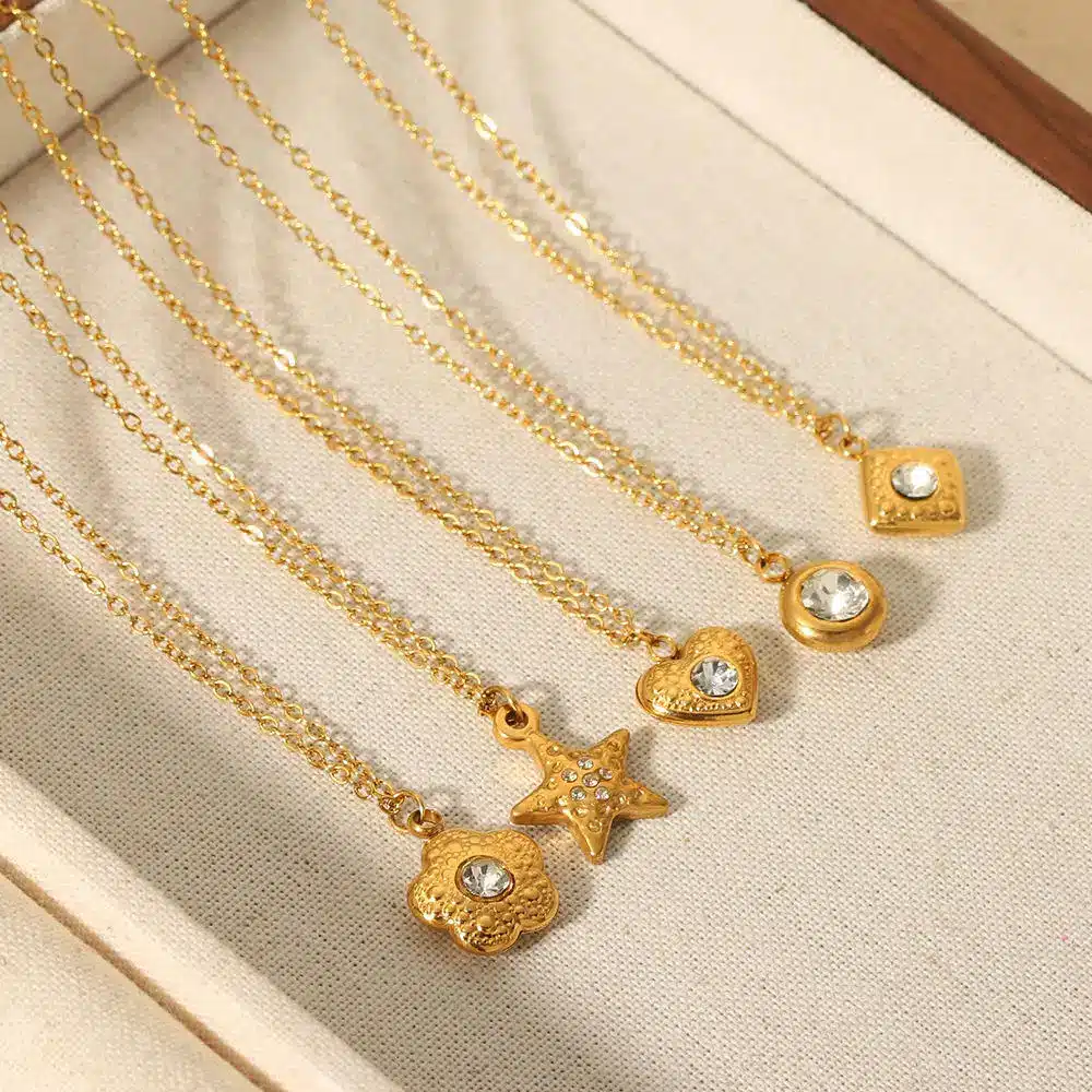 Be the first to review “Vintage Waterproof Necklace Stainless Steel Jewelry Chain 18k Gold Plated Zircon Heart Round Flower Pendant Necklace for Women” Cancel reply