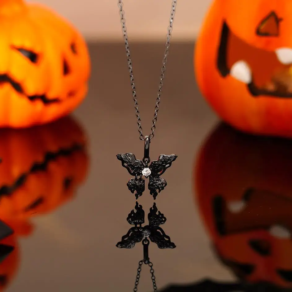 Vintage Wholesale 925 Sterling Silver Black Butterfly Pendant Electroplating Halloween Dark Style Diy Accessories Bulk