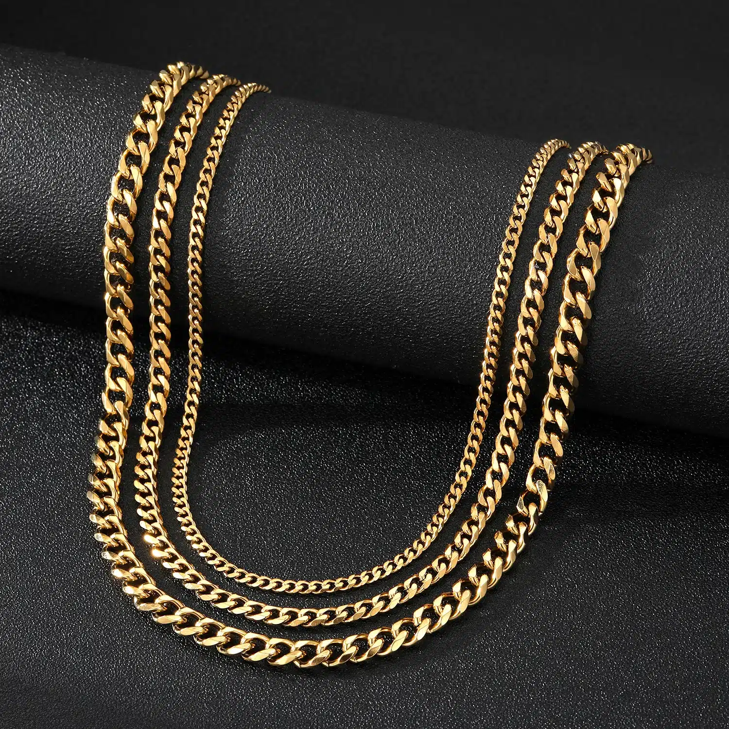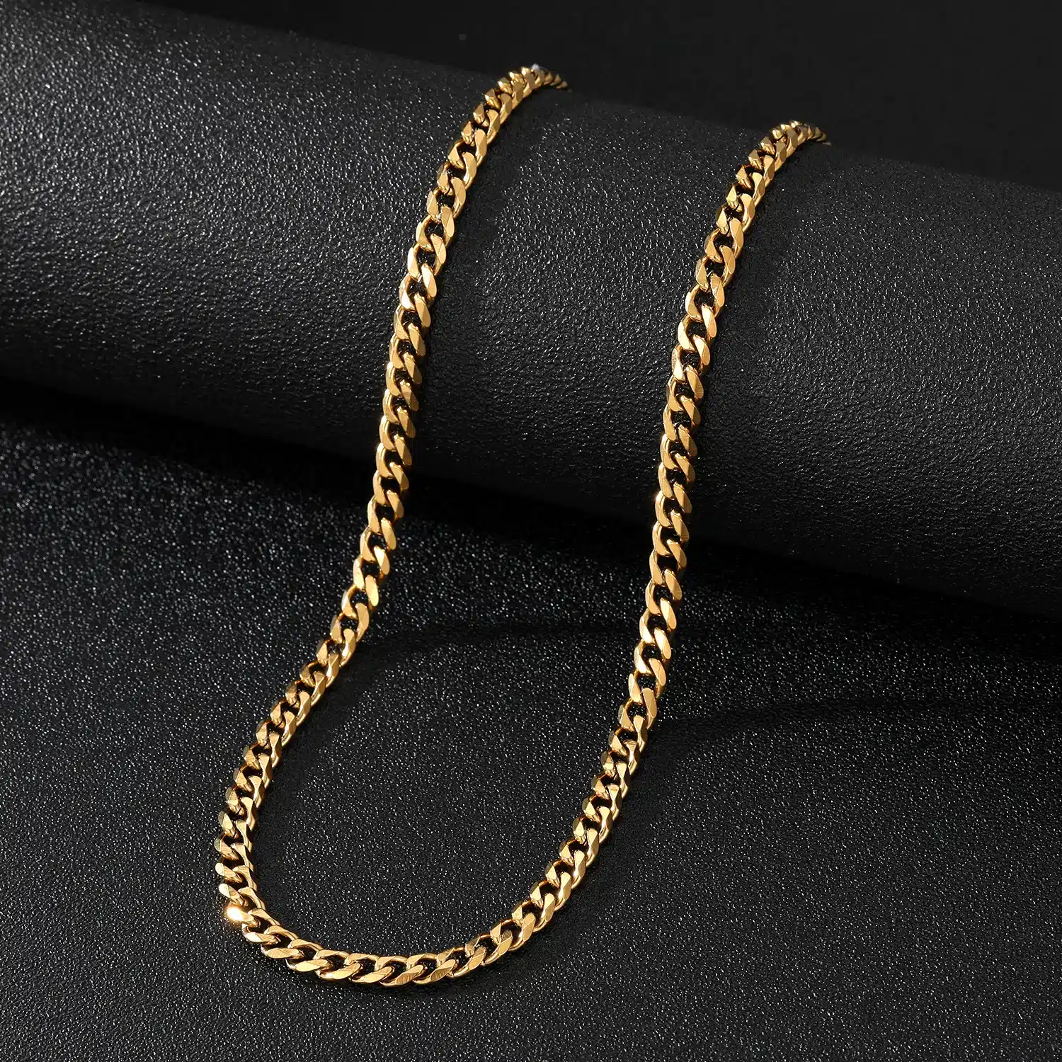 VKME Hip Hop Punk Style 18k Gold Plated 316L Stainless Steel Cuban Chain Necklace Jewelry
