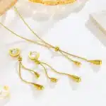 Be the first to review “Water Droplet Tassels Necklace Earrings Sets Gold Stainless Steel Women Korean Chain Pendent Set Temperament High End Jewelry” Cancel reply