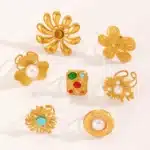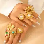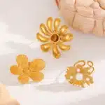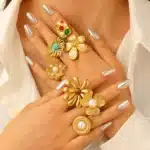 Waterproof Stainless Steel Big Flower With Pearl/Stone Rings for Women Trendy Lady Finger Rings Accessories 2025 Fashion Jewelry