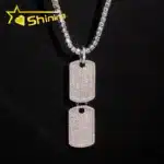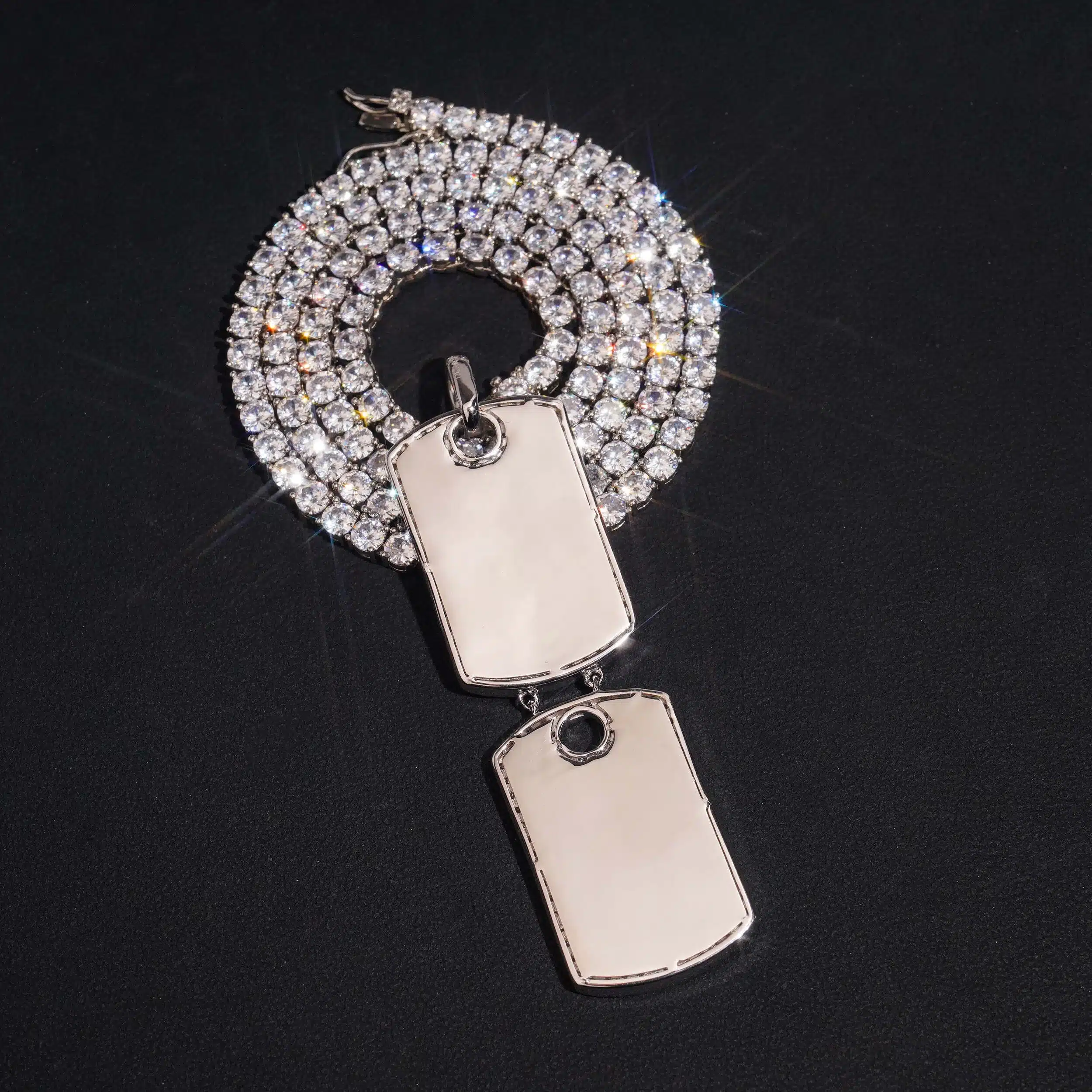 White Gold VVS Moissanite Diamond Double Dog Tag Pendant Match 4MM Tennis Chain Necklace