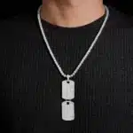 Be the first to review “White Gold VVS Moissanite Diamond Double Dog Tag Pendant Match 4MM Tennis Chain Necklace” Cancel reply
