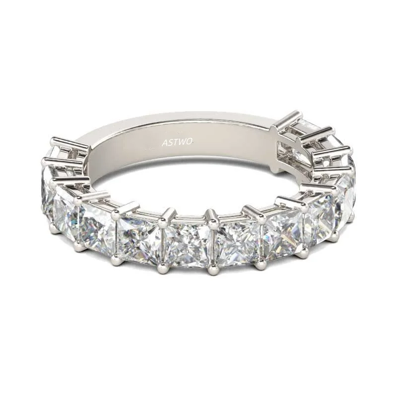 Wholesale 18K Solid Gold Moissanite 10K 14K Gra Certified VVS Princess Cut Bar Setting Wedding Band Moissanite Ring