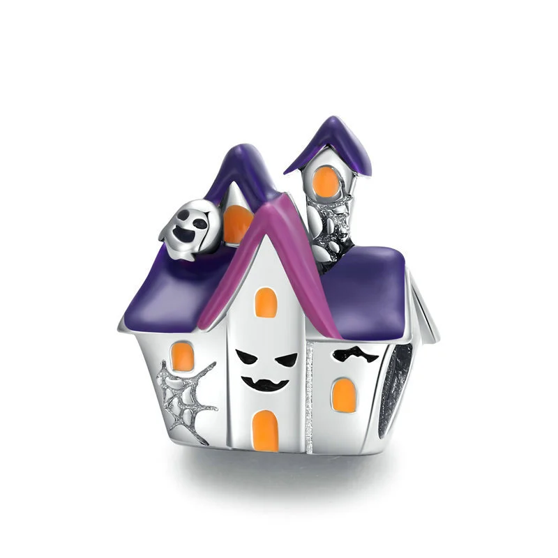 High Quality 925 Silver Halloween Gift Cat Pumpkin DIY Beaded Bracelet with Rhodium Gold Plating Vintage Style Pendant Jewelry