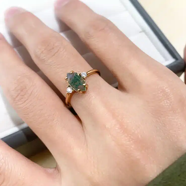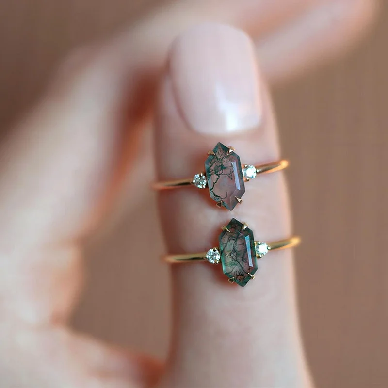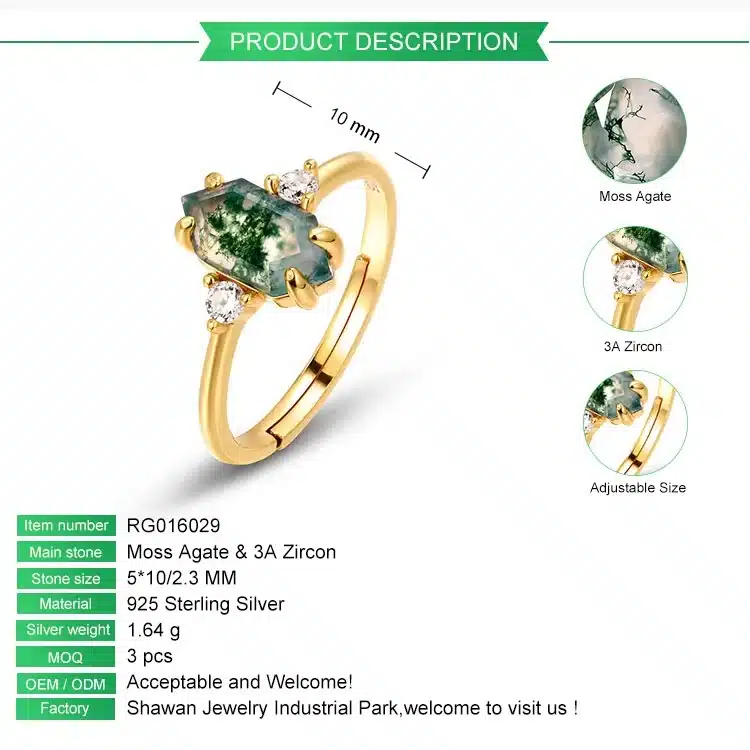 Be the first to review “Wholesale 925 Silver Jewelry Retro Gemstone Ring Gold Plated Hexagon Shape Natural Green Moss Agate Ring” Cancel reply