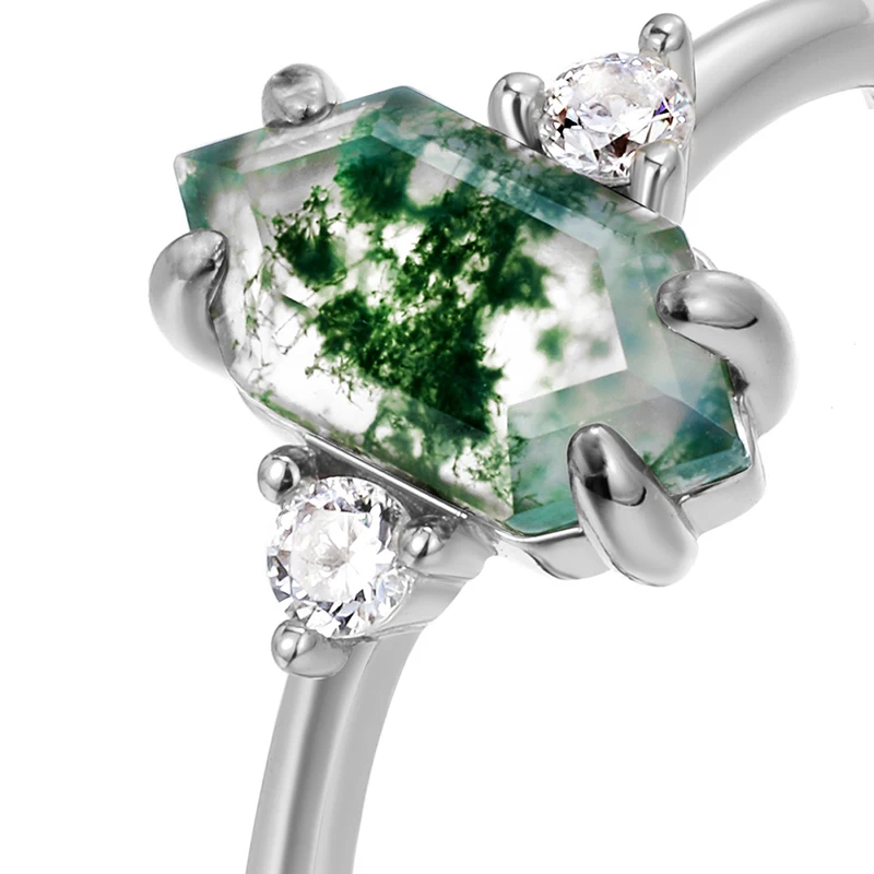 Item Number | RG016029 | Main Stone | Green Moss Agate &5 A Zircon |