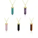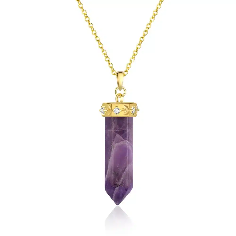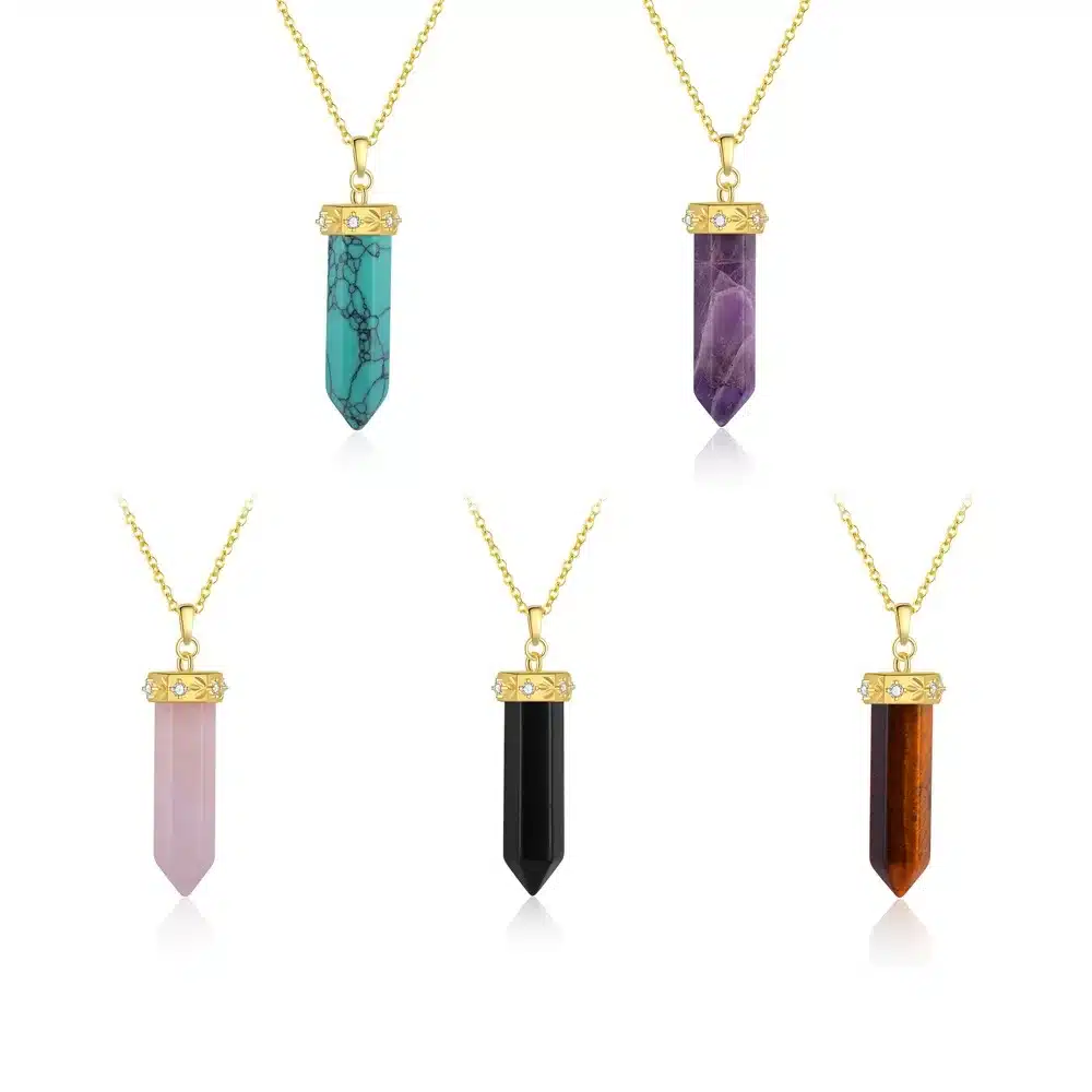 Be the first to review “Wholesale 925 Sterling Silver 18K Gold Plated Crystal Raw Stone Pendant Hexagonal Pillar Moon Necklace for Women”