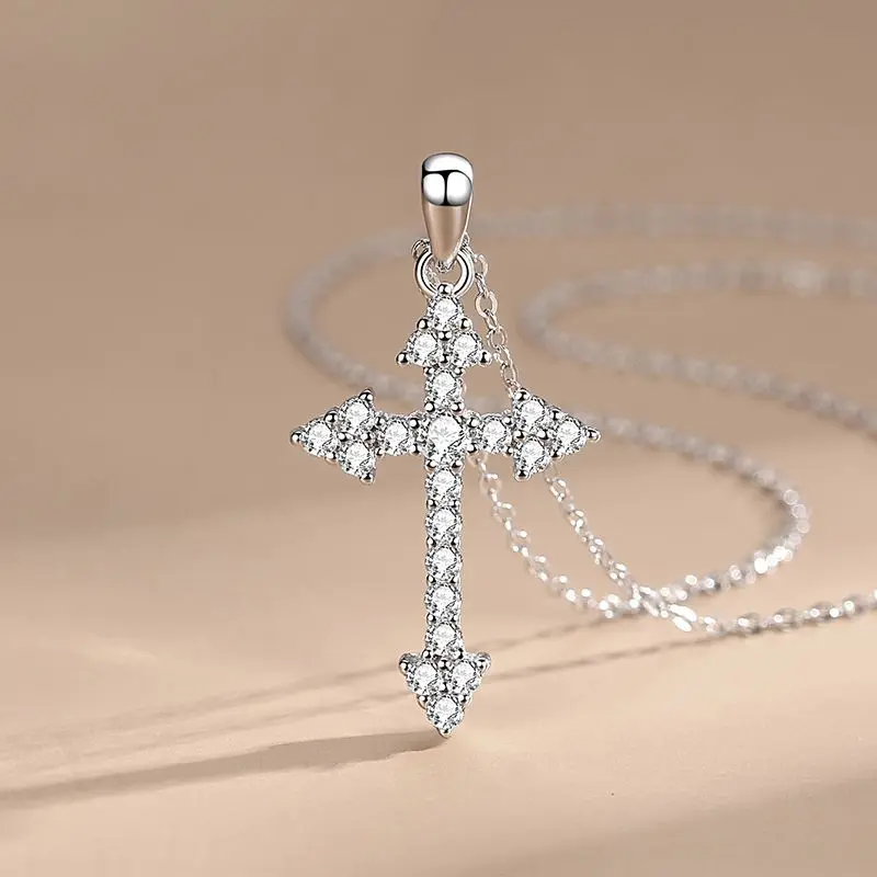 Wholesale 925 Sterling Silver Cross Necklace Full Diamond Personality Charm Pendant Necklace for Women