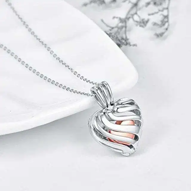 Wholesale 925 Sterling Silver Rose Gold Plated Heart Box Hollow Heart Cage Urn Necklace
