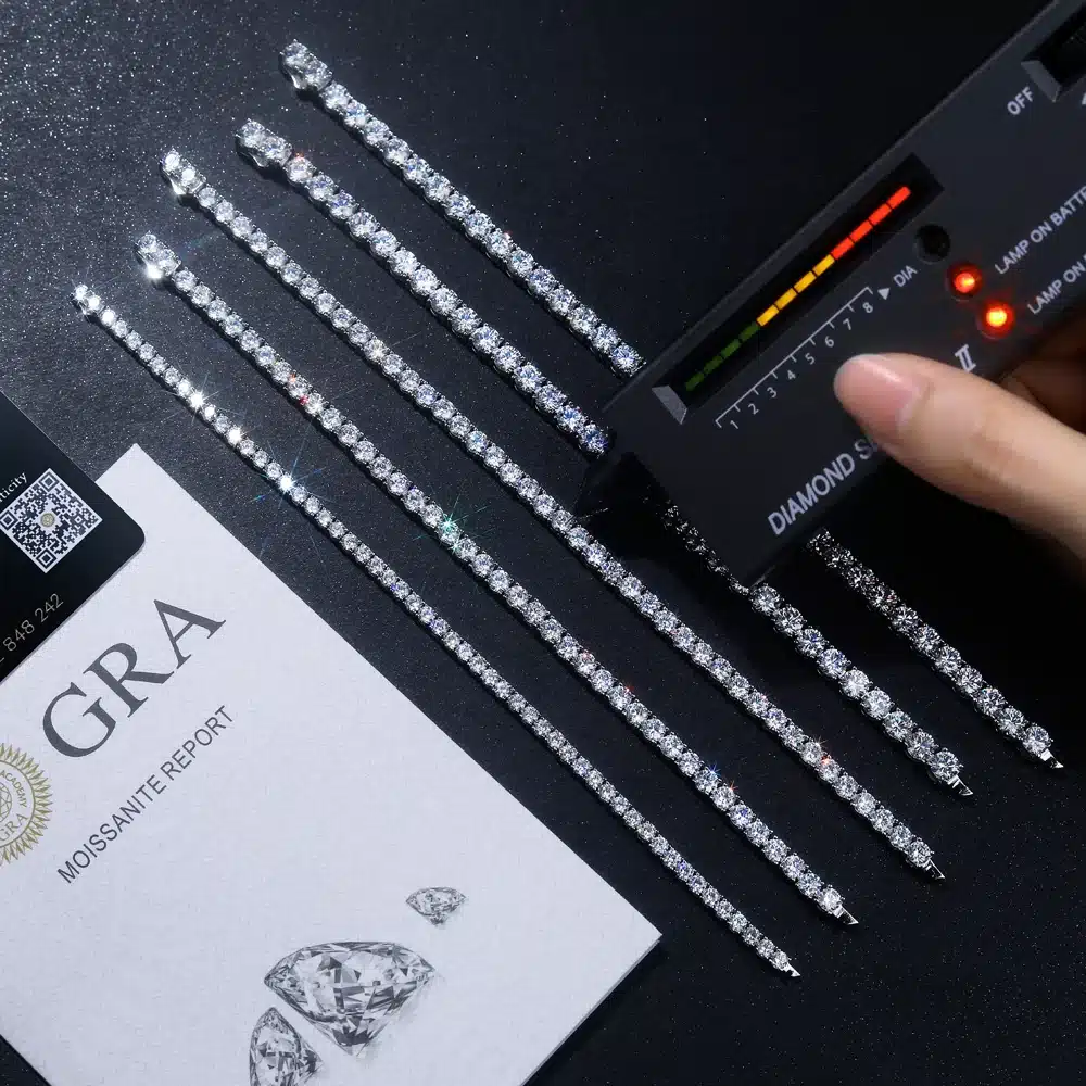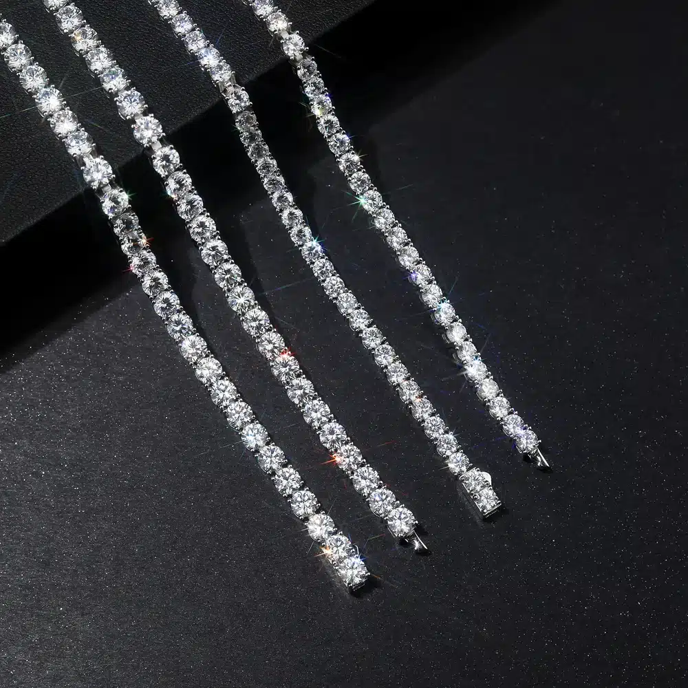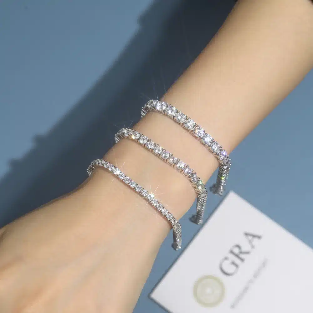 Key attributes Bracelets or Bangles Type:Tennis Bracelets Jewelry Main Material:925 Silver Main Stone:ZIRCON/Moissanite Plating:Rhodium Plated Gender:Women’s Style:Trendy Inlay technology:Aperture setting