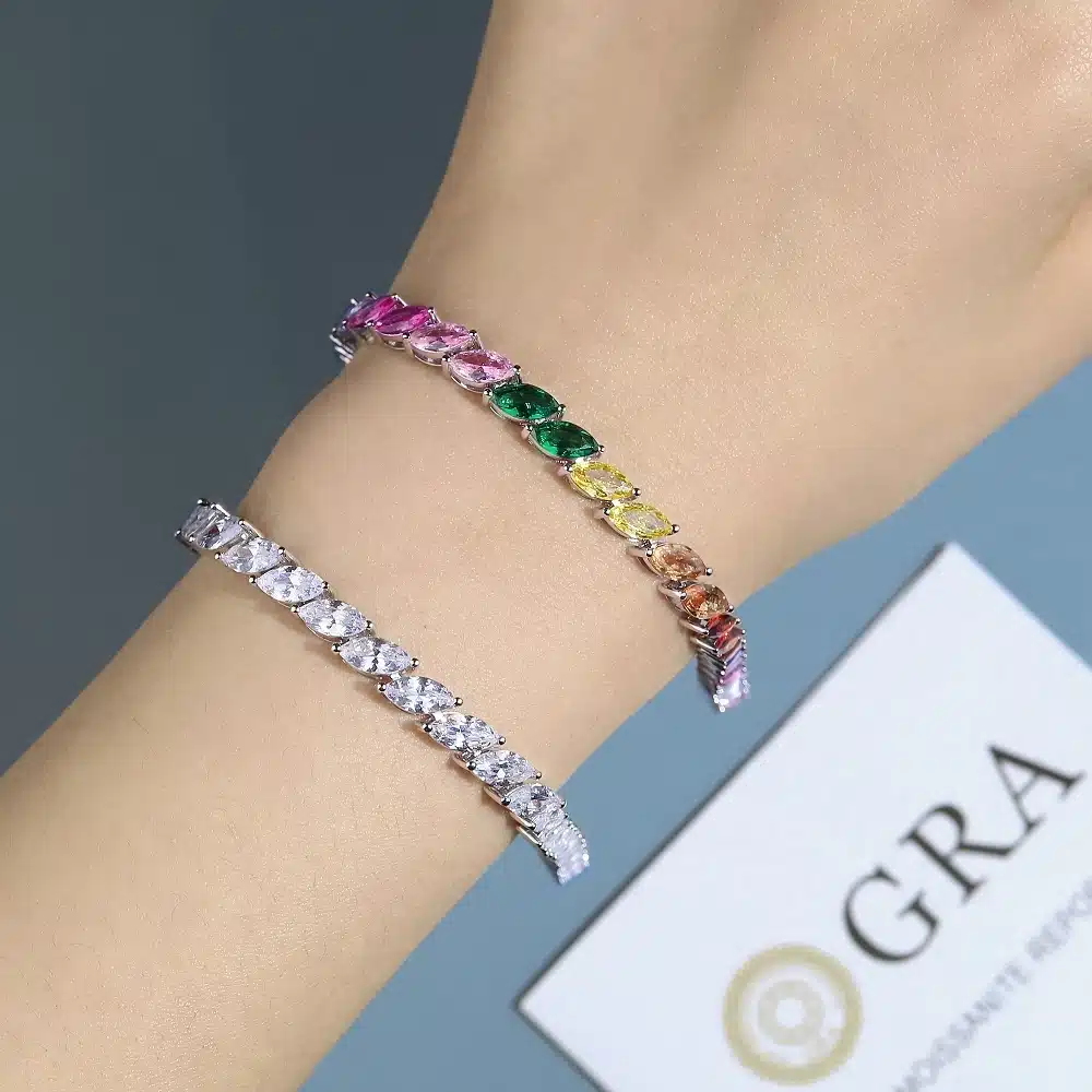 Be the first to review “Wholesale Custom Fashion Sterling 925 Silver Rainbow Olivine Zircon Sterling Tennis Bracelet” Cancel reply