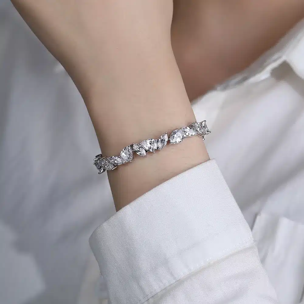 Key attributes Bracelets or Bangles Type:Tennis Bracelets Jewelry Main Material:925 Silver Main Stone:ZIRCON Gender:Women’s Style:Trendy Shapepattern:Plant Occasion:Party