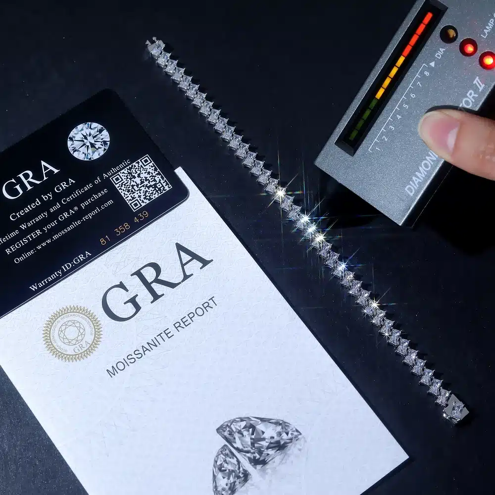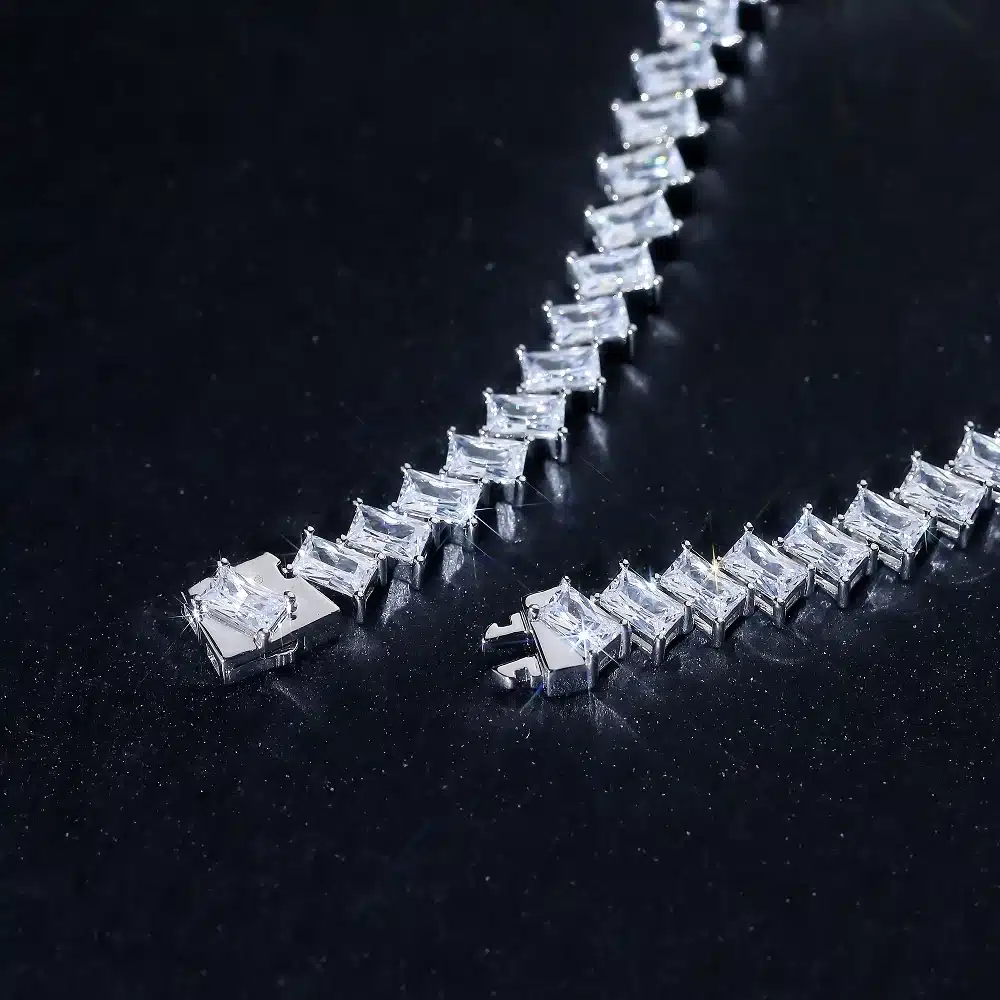Key attributes Plating:Rhodium Plated Bracelets or Bangles Type:Tennis Bracelets Jewelry Type:Bracelets, Bangles Main Stone:Moissanite Jewelry Main Material:925 SILVER Style:Hiphop Certificate