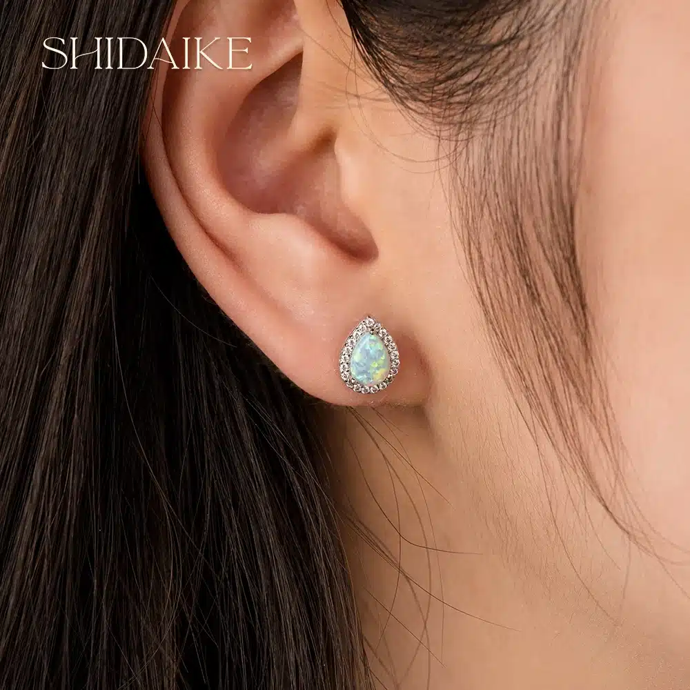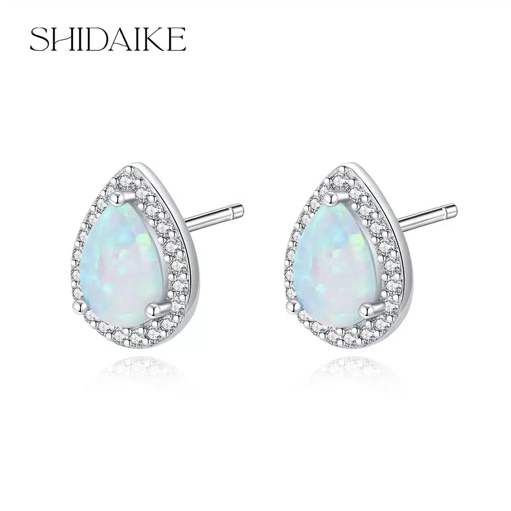 Wholesale Custom Opal 925 Sterling Silver Rhodium Plated Platinum Jewelry Women’s Wedding Suit Studs Drop Earrings Zircon