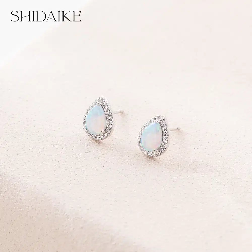 925 Sterling Silver Opal Rhodium Plated Platinum Women Cute Stud Earrings