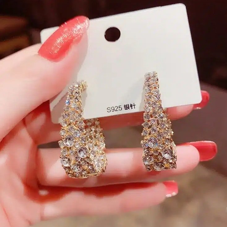 Key attributes Earrings Type:Drop Earrings Jewelry Main Material:Alloy Plating:Gold Plated Style:Trendy Main Stone:Crystal, Rhinestone Gender:Women’s Jewelry Type:Earrings Occasion:Anniversary Shapepattern:Geometric