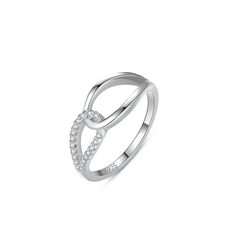 LOZRUNVE Jewellery 925 Sterling Silver Two Layer Wave Delicate Pave Ring for Women
