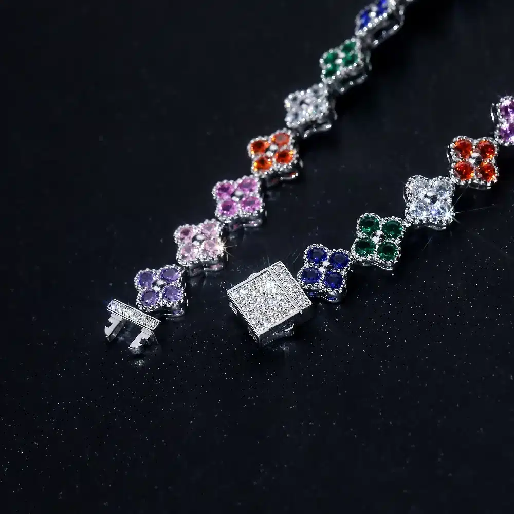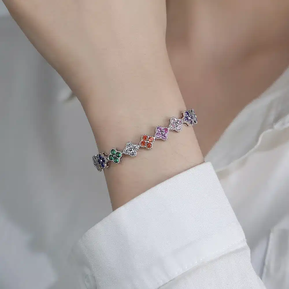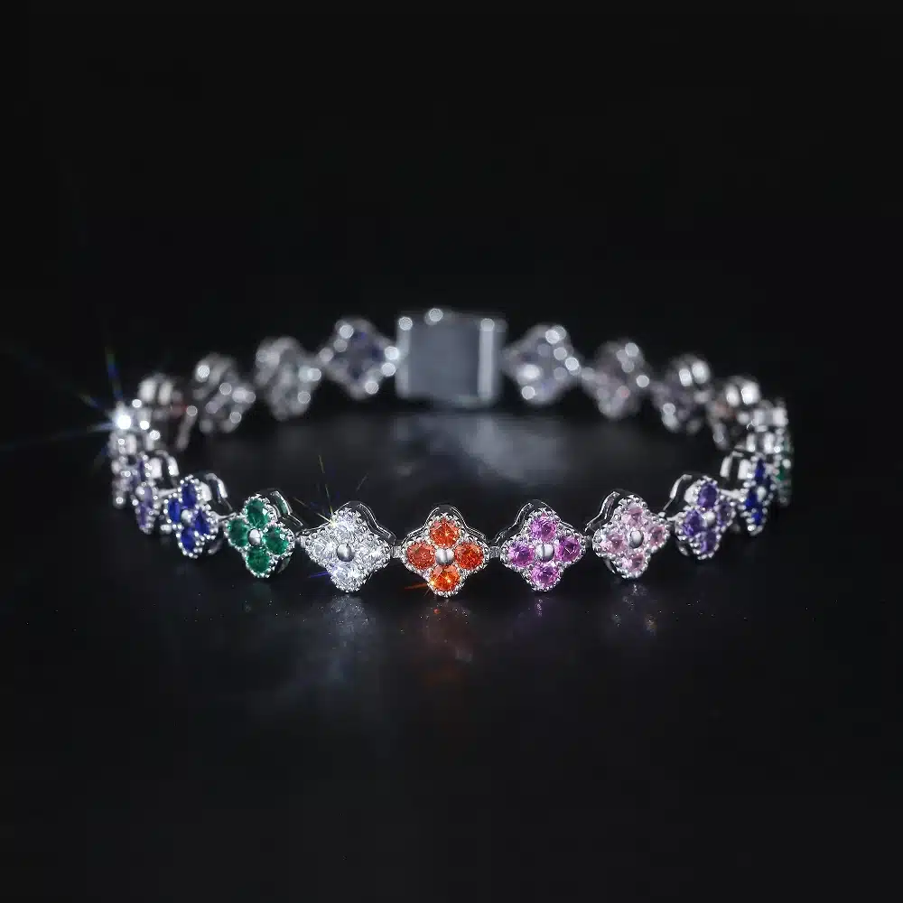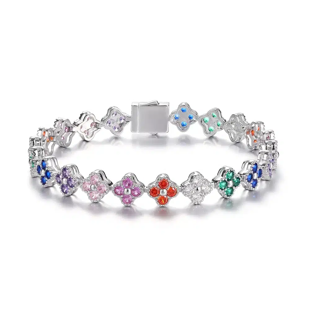 Be the first to review “Wholesale Friendship 925 Sterling Silver Fashion Women Men Shape 17.5cm Zirconia rainbow Four Leaf Clover Tennis Bracelet” Cancel reply