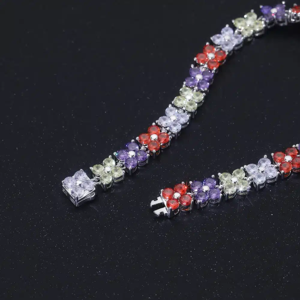 Wholesale Friendship 925 Sterling Silver Fashion Women Shape 17.5cm Zirconia rainbow Four Leaf Clover 3mm Tennis Bracelet