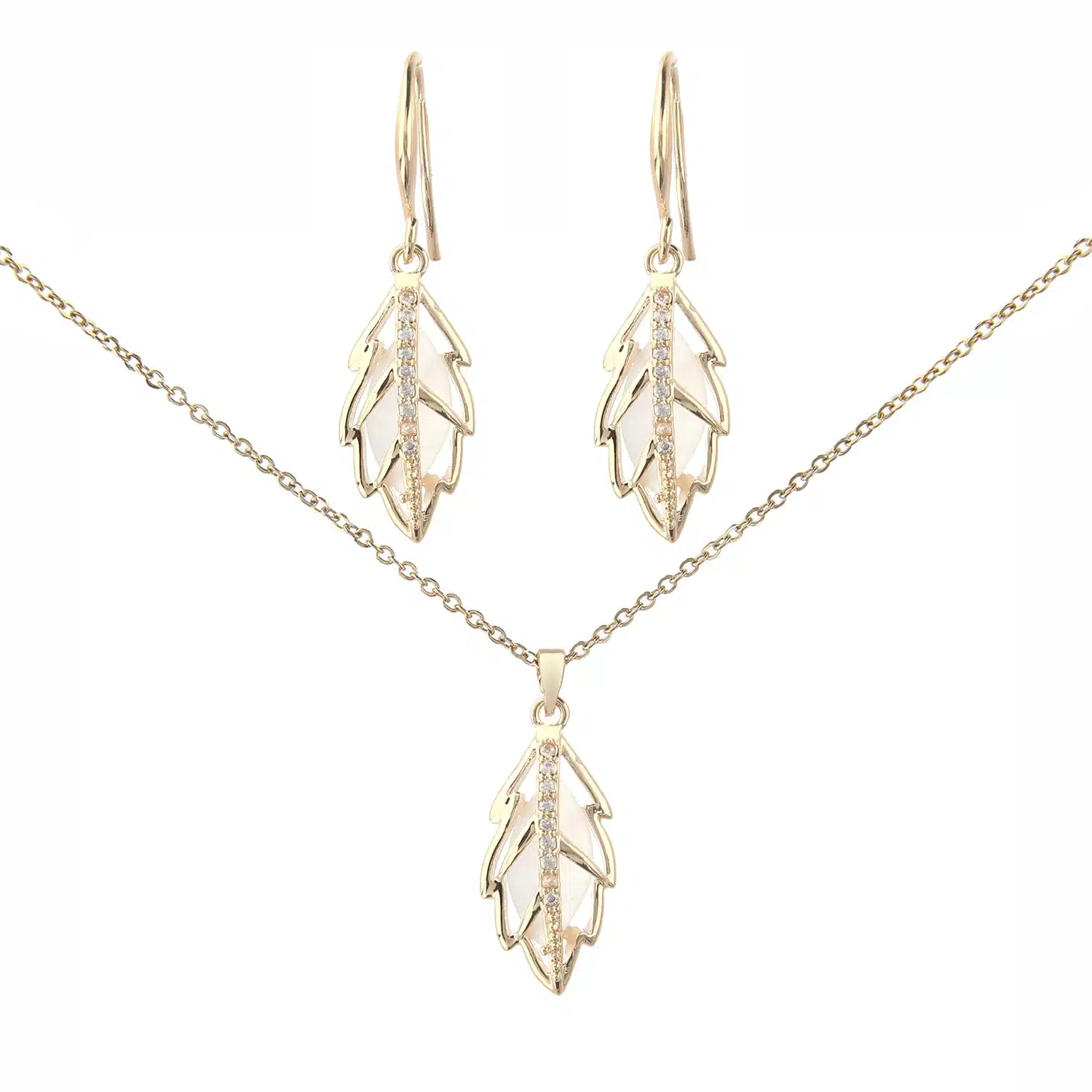 Be the first to review “Wholesale Gold Plated Fashion Jewelry Sets Women Leaf Shape Hollow Pendant Necklace and Earring Sets”