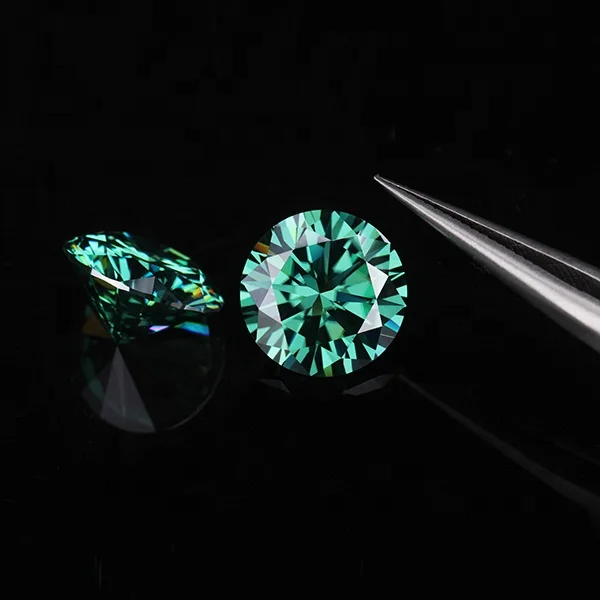 Round Shape Cyan Tone Green Blue Color Multi Colored Light Green Moissanite