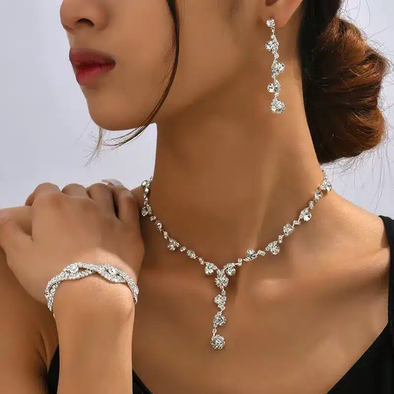 Be the first to review “Wholesale Luxury Copper Inset Rhinestone Necklaces Earrings Bracelets Set Fashion Brass Crystal Wedding Accessories” Cancel reply
